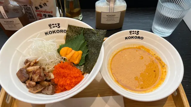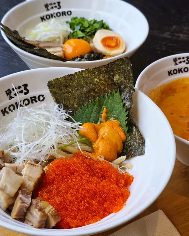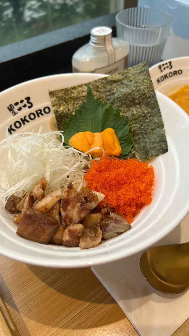 KOKORO 門口有個新海膽濃湯系列,完完全全被佢吸引左我入去食呢個~🤩揀左沾麵款~ ✨✨🍜海膽沾麵SEA URCHIN TSUKEMEN一黎到就已經被佢既海膽濃湯味道吸引左,湯汁極度鮮甜~因為呢到既海膽係用💯100%新鮮日本空運海膽,海膽好鮮甜﹐亦都想大讚呢到配上海量既飛魚子,那刻令到個湯汁再昇華,每一條麵要掛到汁同埋沾滿飛魚子,麵質好彈牙,口感好豐富🤤,大家記住早D到黎點呢個,因為係每日限量發售同售完即止~ ✨✨✨🍜明太子忌廉沾麵MENTAIKO CREAM MAZESOBA最愛既明太子令我有驚喜,原來沾麵都做得咁好效果,一共有三個食法,第一個食法係將🥚雞蛋拌勻,食到原汁原味既明太子,第二個食法就係加黑胡椒提升香味,第三個最特別係加陳年雪梨陳醋,酸酸地好開胃,但食到尾既醬汁一滴不漏,因為餐廳會提供一個迷你飯🍚,連D醬汁都唔會剩低~ 🍵抺茶拿鐵MATCHA LATTE☕️焙茶拿鐵HOJICHA LATTE 日本綠茶粉同加牛奶製成,口感順滑~焙茶同鮮奶既比例非常完美,有細緻既茶香味~ 呢到既沾麵非常有驚喜,同出面普通拉麵鋪對比,呢到享受到特別用心意對代味蕾層次既要求~Read More