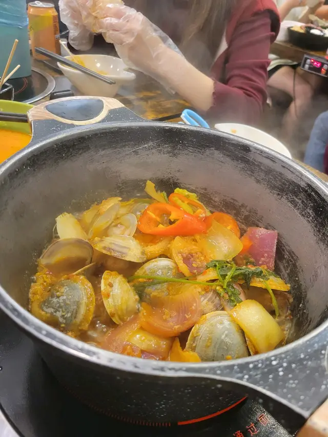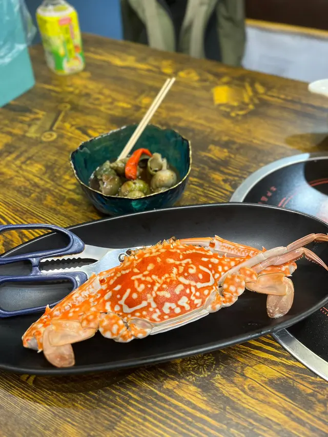 原來大埔呢邊新開左間任食雞煲海鮮打邊爐😍😍今日有機會試過好正呀!好開心大埔多左個打邊爐落腳地!仲要性價比超高!價錢合理而且質素高。食物種類非常多樣性,估唔到連炸物都有,千祈唔好睇少呢間小店!食雞煲之餘,店主會送你冷盤前菜,可以㨂凍蟹或者冰火翡翠螺。我同朋友一日揀咗一樣。凍蟹肉質結實又鮮甜,翡翠螺酒味濃郁,味道非常好,翡翠螺本身亦好新鮮爽口👍🏻雞煲我哋揀咗招牌麻甩雞鍋,份量大到你唔信🤭味道非常之香濃,食唔停口!之後打邊爐嘅湯底選擇了混你個醬卜卜蜆鍋。呢個味好特別,有大量蒜蓉,洋蔥,芫茜,辣椒混蜆,色香味俱全!蜆肉大大隻又厚肉!查看更多
