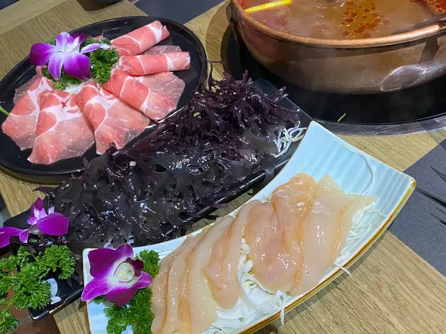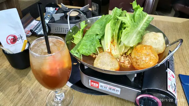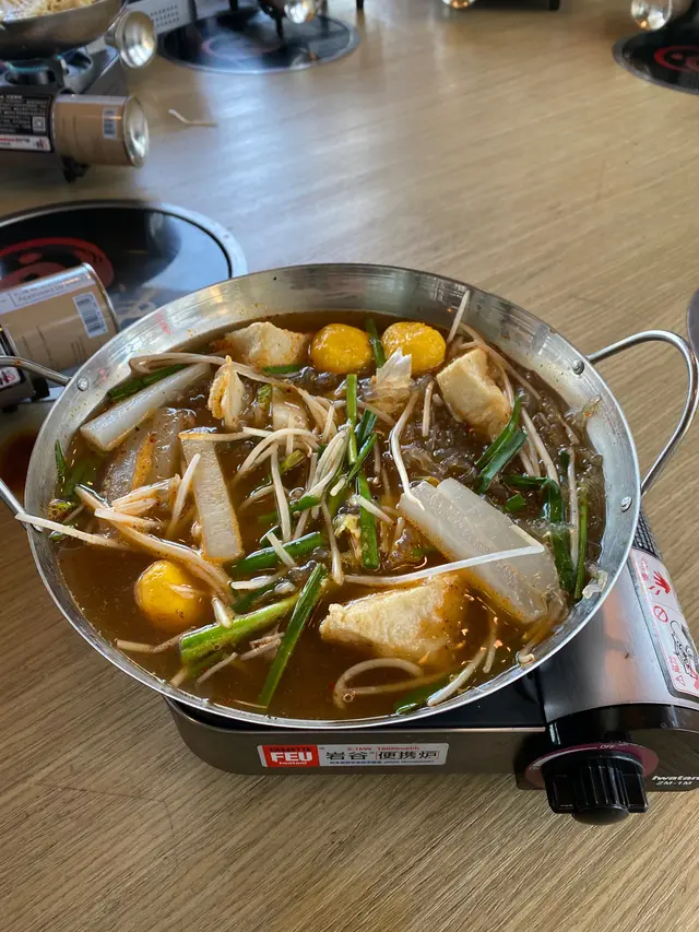 港式麻辣湯底,配 鮮牛肉、生根、台灣A菜 + 韓式公仔麵 (set lunch)