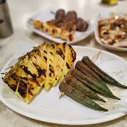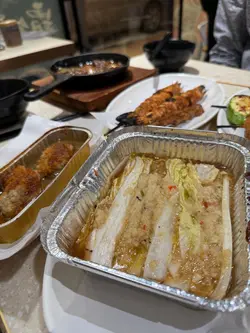 娃娃菜配合蒜蓉、辣粉,放在锡纸兜内烧香。娃娃菜口感清爽,带少许奶油香气,微辣咸香,非常可口