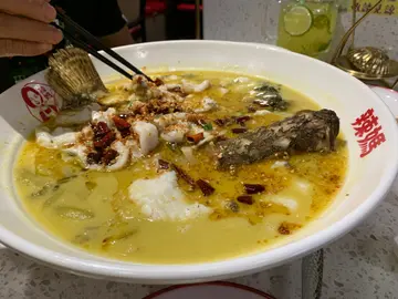 酸菜鱼原条上,阔过我3块面,好多粉丝系鱼下面,不过略咸。另外几道菜都好香,如猪油渣菜心、干香椰菜花,特饮水果茶好多好多水果,起码5种,但青柠比较清新,沙冰普通。担担面都好食。