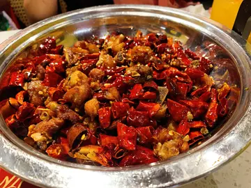 食落口 (见下图): o的鸡粒比一般川菜馆o既都较大件, 可惜油泡时过o左火, 颇为干水兼本身无乜调味, 食落相当淡口. o的辣椒o既辣度只系小至中辣o既程度, 令我地一心尝辣o既都非常失望.