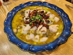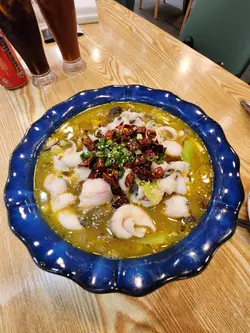 同妈妈行完街,通常都系食日本菜,今晚带佢转吓口味,食川菜。行到有D热,即刻叫杯冻饮。唔想饮冻柠茶咁普通,就可以试呢杯百香果柠檬茶 ($36),有埋柑桔仔助攻,甜中带酸,清爽岩饮。今餐就由我发办,有辣有唔辣,由大路款式开始。喜爱莴荀嘅清爽度,来一客清炒莴荀丝 ($68)。切成丝容易一注夹起,味道清甜。惹味之选就系呢客黄金虾球 ($138),成碟有成8只虾球,几抵食。虾球外披上一身炸浆,再淋上用咸蛋黄炒上嘅酱,咸香味满满; 虾球爽口,再饮啖冻饮,正呀喂。压轴出场有金汤酸菜鱼 ($188),辣度有得选择,呢客系小辣。唔少鱼相片浸于金汤内,顶上再有红辣椒及芫茜,颜色配搭惹人胃口。鱼片无细骨,入口相当嫩滑。另有酸菜,莴荀片,干菌,鲜菇及红薯粉,汤底酸辣度岩口味,用少少金汤捞饭都唔错。妈妈想食甜品,就叫咗红糖糍粑 ($58) 比佢试吓。两啖一条岩岩好,外脆内有糯米嘅软糯感,沾上红糖浆食,有人食到一条接一条,哈哈…….呢餐川菜好合妈妈胃口,已经讲定下次想食咩菜式。…查看更多