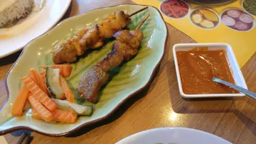 除左点左烧大头虾 我地仲拣左猪同鸡肉既串烧肉质厚实有口感 点埋沙嗲汁食就会味道level up