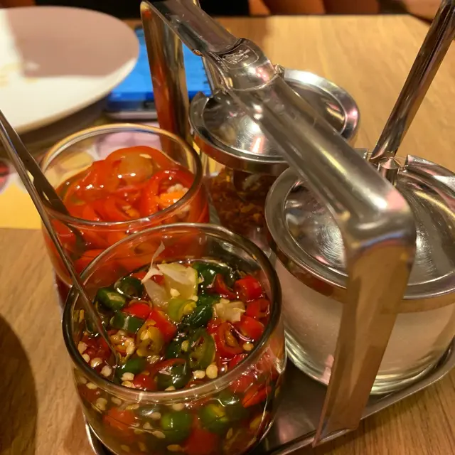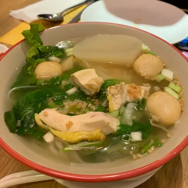 鐘意食辣既小胖男友就覺得可以再辣d 就加更惹味另一樣我地揀左轉冬蔭公湯底既雞絲魚蛋湯河話就話雞絲 查實係疑似無骨既海南雞件