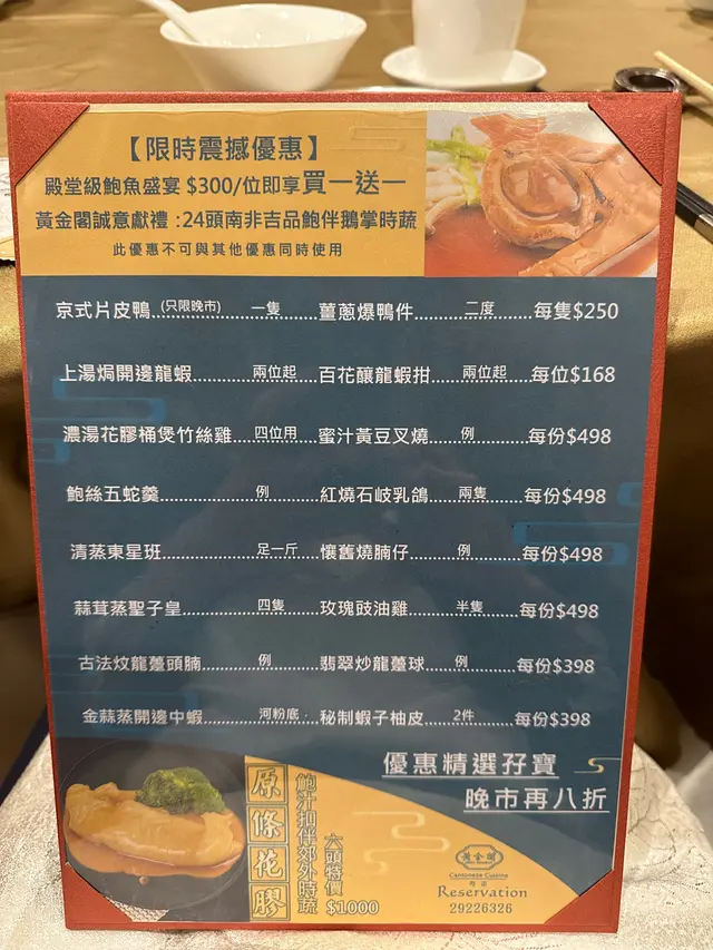 黃金閣 (上环) 网上订位即赚Rice Dollars 网址: https://s.openrice.com/QrLS0z0i000 地址: 香港上環干諾道中168-200號信德中心1樓104A-B號舖 电话: +852 29226326