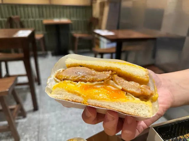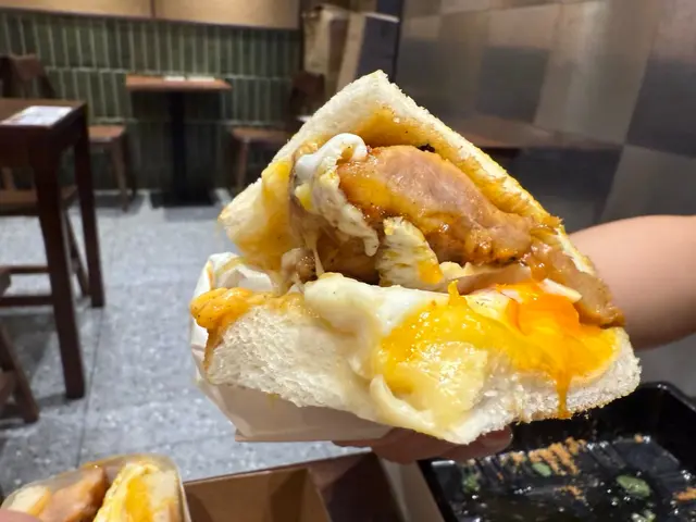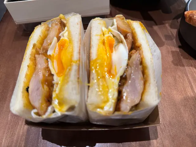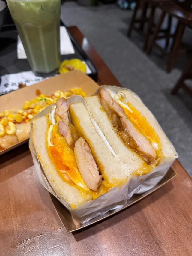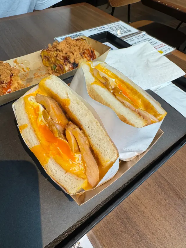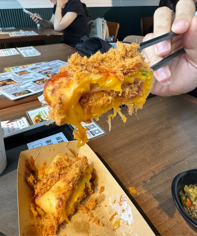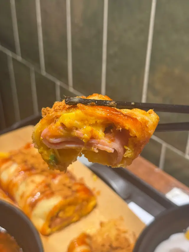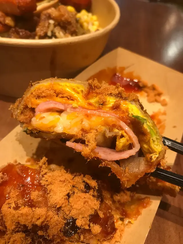 本身超喜歡吃蛋餅!這款有芝士、火腿和肉鬆。芝士半溶,夾起有拉絲感