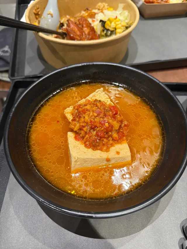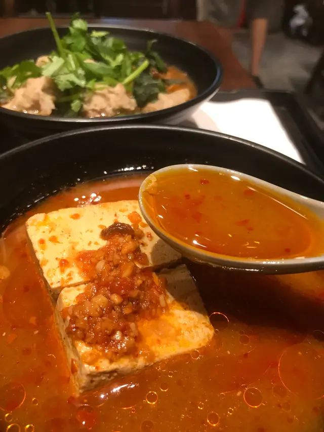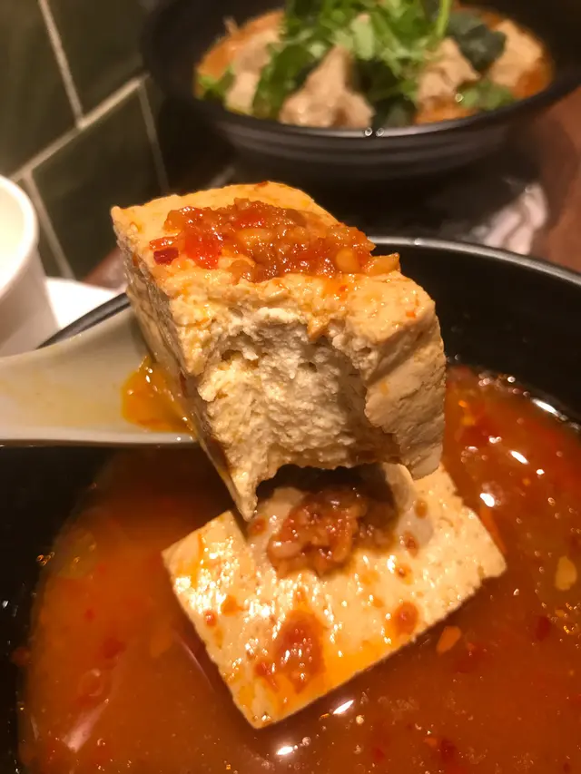 湊湊湯底據悉也是自家熬煮,配上豆腐。豆腐綿密柔軟,豆香味頗為突出。豆腐索盡湊湊湯底的辣香味