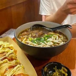 。秘制红烧牛肉面,汤底几浓郁,饮得出系用心制作,鲜甜得来又带少少药膳味道。牛肉炆得软淋,入味又唔韧。面条弹牙,挂汤能力唔错,全部食完好饱TIM