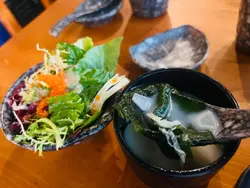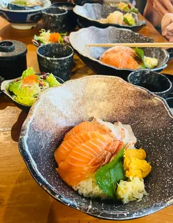 难得中午出街食饭,去富多来商场真系一个挑战,因为好多舖头都系小店, 12:30出嚟,真系好难揾位。刚好遇着有人book咗12人,喺唔够枱嘅情况下,我哋五个人就坐张四人枱,好彩前菜嘅汤安抚坐得唔舒服嘅心情。看似平平无奇,但系个鱼汤好浓,饮完亦都唔觉得口干。午市套餐都有唔同嘅选择,食鸡扒好似Hea得滞,所以就拣咗鱼生饭。但后来见到同事块鸡扒煎到脆脆又好鬼吸引。不过去到日式店舖冇理由唔食鱼生,所以就嗌咗一客鱼生饭。饭嘅份量唔算多,撞啱冇乜胃口呢个份量就啱啱好。三文鱼就切得薄咗少少,但系食落都系正常嘅。海胆食落去都有鲜甜味,反而两只虾就唔系好够鲜味,但系肉质都系爽嘅。下次要试牛脷,见到旧同事嗌个牛脷劲厚切,简直系心心眼。事实上呢间都真系开咗好耐,以现在嘅经营环境嚟讲,还可以屹立到,都系有一定嘅实力!…查看更多