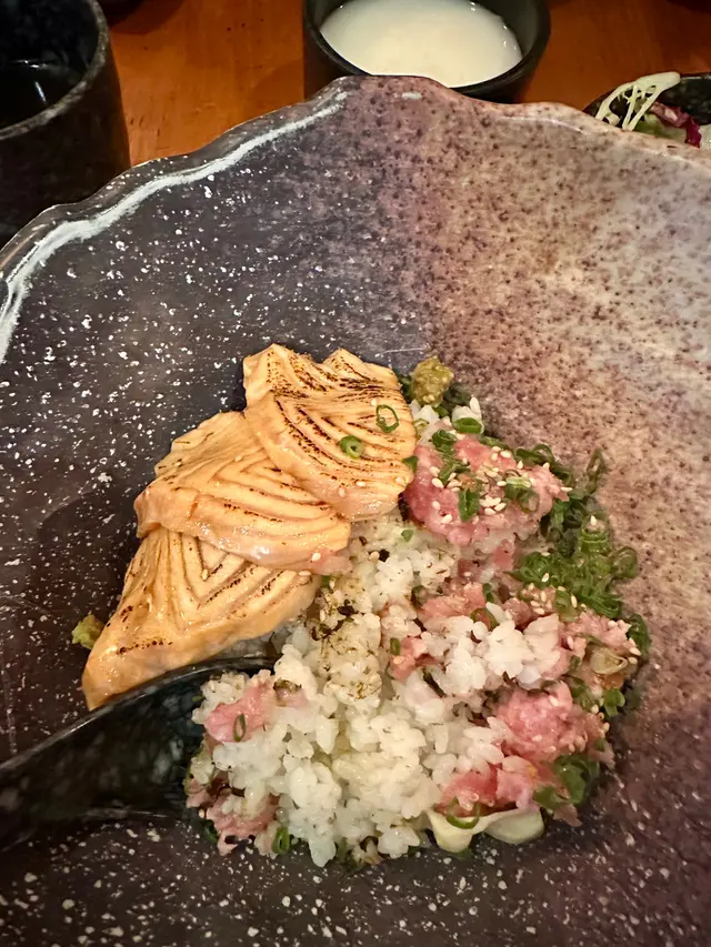 難得中午出街食飯,去富多來商場真係一個挑戰,因為好多舖頭都係小店, 12:30出嚟,真係好難搵位。剛好遇着有人book咗12人,喺唔夠枱嘅情況下,我哋五個人就坐張四人枱,好彩前菜嘅湯安撫坐得唔舒服嘅心情。看似平平無奇,但係個魚湯好濃,飲完亦都唔覺得口乾。午市套餐都有唔同嘅選擇,食雞扒好似Hea得滯,所以就揀咗魚生飯。但後來見到同事塊雞扒煎到脆脆又好鬼吸引。不過去到日式店舖冇理由唔食魚生,所以就嗌咗一客魚生飯。飯嘅份量唔算多,撞啱冇乜胃口呢個份量就啱啱好。三文魚就切得薄咗少少,但係食落都係正常嘅。海膽食落去都有鮮甜味,反而兩隻蝦就唔係好夠鮮味,但係肉質都係爽嘅。下次要試牛脷,見到舊同事嗌個牛脷勁厚切,簡直係心心眼。事實上呢間都真係開咗好耐,以現在嘅經營環境嚟講,還可以屹立到,都係有一定嘅實力!…查看更多
