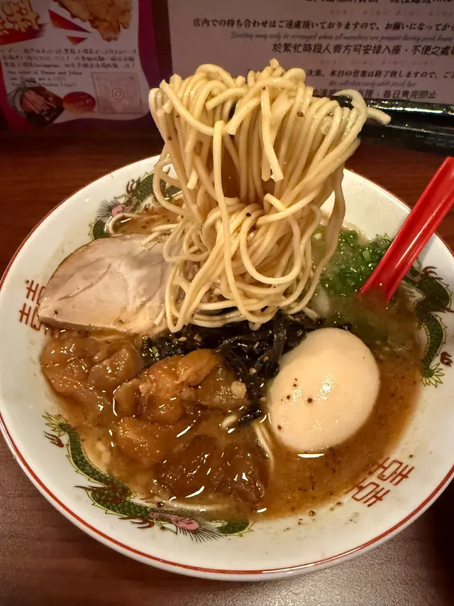 上環蘇杭街藏着一間新開的隱世日式拉麵店,是灣仔那家2014年開業、經營逾十年老鋪的分店,同樣由日本人親自掌舵,對食材挑選和烹調細節一絲不苟,堅持用新鮮優質原料,還原最正宗的日式拉麵風味。這裡的拉麵湯底是一大亮點,所有湯底均需每日花費長時間慢火細熬,熬出的湯汁濃郁醇厚,鮮味十足。店內佈置洋溢著傳統的日式韻味,吧台座位能讓你近距離欣賞拉麵製作的每一個儀式感步驟,同時也配有雙人桌。不管是獨自前來覓食,還是和朋友結伴分享美食,都能找到舒適的體驗。黑龍豚骨拉麵 - $98奶白濃醇的招牌豚骨湯底格外誘人,選用大量新鮮豬骨經長時間慢熬,骨髓精華充分融入湯中,濃稠順滑有厚實的肉脂香,還能根據喜好挑選合適辣度;兩塊厚切叉燒用低溫慢煮製作,軟嫩到輕咬即化,肉汁充盈又入味;細直拉麵輕盈滑順帶有彈性,完美吸附湯底精華,搭配紫菜絲、新鮮蔥花、清甜的洋蔥和脆嫩筍片,每一口都好豐富!餃子 - $48單面油煎,底部有一層薄薄的脆皮,餃子皮煙韌有嚼勁,內餡有免治豬肉混合新鮮蔬菜,入口先是濃郁的肉脂香,後又能嘗到蔬菜的清爽解膩,可蘸上日式醬油鹹鮮滋味相互交融。炸雞 - $38外皮薄而不厚重,酥脆而不油膩,帶着淡淡的日式醬香,內部鎖住豐富的汁水,軟嫩細膩而不乾柴,可蘸上沙律醬。零系可樂ZERO - $18/罐飲品選擇相當靈活,不僅有免費飲用水,還有無酒精的罐裝汽水,想小酌的話也能選生啤。…查看更多