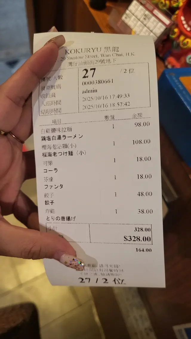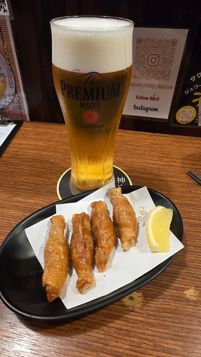 湾仔相当出名既#黑龙拉面,出名在于正宗日本风味,过江龙2014年开,好有风味既感觉😍长期排队店,但等位都算快,因为上菜好快👍🏻Bar枱仲有得望住师傅整黑龙豚骨拉面,招牌拉面,先饮汤,汤底系豚骨汤,超浓,有辣汁加埋更浓非常好味🫶🏻软身面超夹,有蛋味,挂汤好正🤤必加玉子,溏心蛋加啲浓汤好好味👍🏻叉烧腍滑,招牌就系质素保证🤞🏻饺子多汁够脆,性价比高,炸鸡🍗唔油肉嫩,味道都几唔错😌白鸡盐味拉面,#鸡白汤 望得出好黏🥺汤底超浓香既鸡汤,实在太好味😋盐汤清澈,完全吊晒啲鸡味出嚟🐣愈食愈想食既拉面,鸡肉都正,拉面地道食标配:加饭同生啤,拣咗明太子饭,唔系用明太子酱系真系明太子💕劲鲜,带咸香,就咁食饭都好正,捞埋拉面汤绝配👍🏻饮埋SUNTORY 生啤,爽😎整体非常高质地道日本拉面屋体验🥳今次食既两款都极正,招牌记得要有辣,豚骨汤同鸡汤都无得输🫶🏻连小食同个明太子饭都惊喜咁正,未食过真系要嚟试吓🙌🏻…查看更多