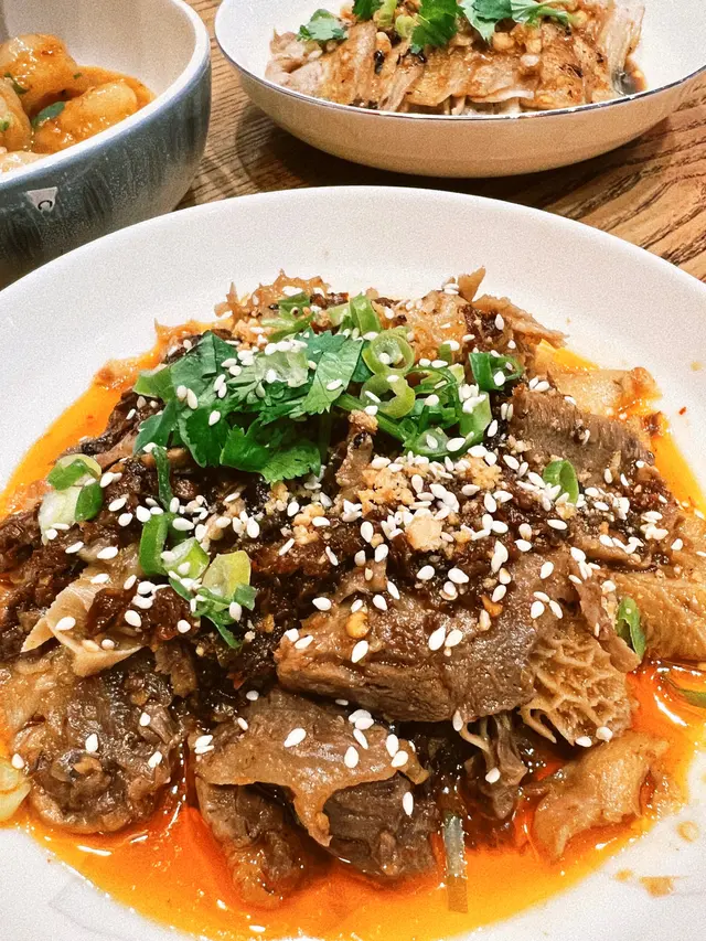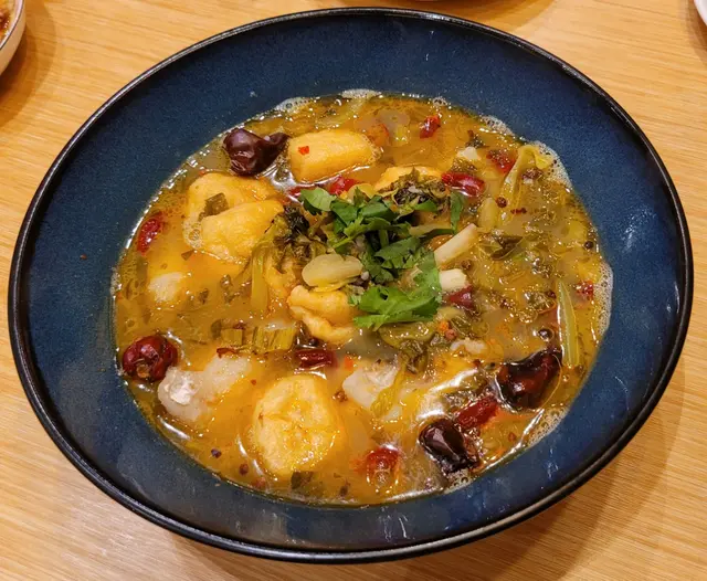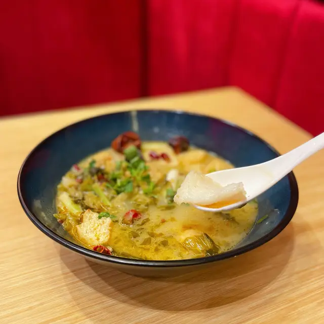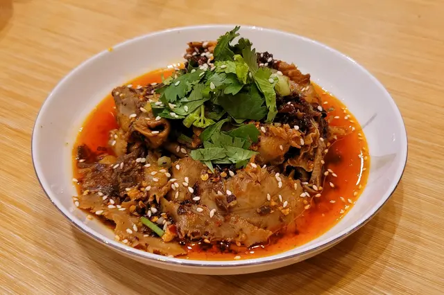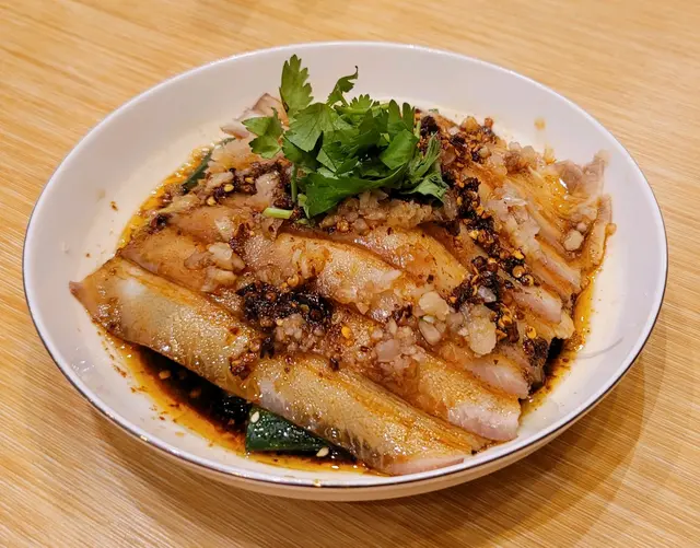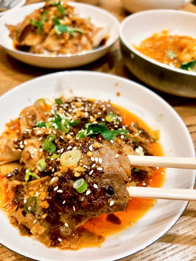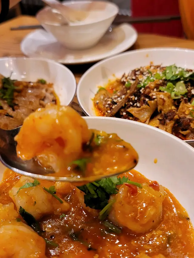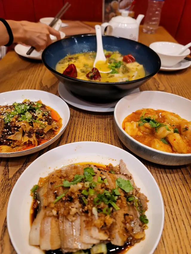 知道呢間餐廳同星級名廚陳啟德師傅一齊精心設計左一系列川菜, 我當然要搵埋為食朋友一齊試啦😋雖然係川菜,但菜式有唔同辣度,照顧到不同喜好的食客夫妻肺片牛心爽口,牛肚軟嫩,鹵得好入味雲片白肉每次見到都想點😋豬肉肥瘦相間,薄而長的,上面放滿蒜蓉及辣椒,肉嫩微辣,好有風味。滋味酸菜魚唔太食得辣可以試吓,酸酸辣辣嘅酸菜魚,好開胃,魚肉肉厚鮮嫩,無骨㗎😌魚香蝦球特別喜歡佢嘅醬汁,咸中帶甘甜,可以提升蝦球嘅鮮味馳名擔擔麵湯底香濃醇厚,入口順滑,麵條軟硬適中,爽滑香口甜品係紅糖糍粑,熱騰騰🔥,外層香脆唔油膩,裡面質地軟軟糯煙韌帶點甜,好有口感查看更多