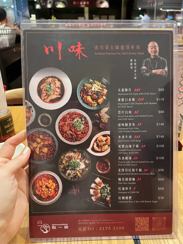 星級川菜名廚- 陳啟德「德哥」師傅,知道佢首次同「點一龍」合作,炮製以「川味」為主題嘅11道特色川菜。 專登約都鍾意食辣嘢同川菜嘅朋友來「點一龍」來捧場試試。餐廳設計以中國紅為主題,中間有個好大嘅紅色中式燈籠大燈同屏風, 設計時尚高貴,充滿中國古典風。 餐廳樓底高,好有空間咁,同朋友傾偈唔會比隔籬位聽到。 今次試咗6款「川味」菜式,唔同嘅餸配搭唔同嘅辣度。 辣得過癮!由前菜、主菜到點甜, 價錢由最低$38去到最高嘅$148,價錢相當親民。夫妻肺片($88)廚師刀工非常厲害可以切到牛肚同牛舌都非常之薄,肉質爽嫩彈牙,好吸辣椒汁嘅味。麻辣味道超出,辣度正常唔會搶咗牛嘅味道。水煮牛肉 ($148)辣到中間,麻味唔算太強烈。牛肉片感覺用發粉嗱過。 所以牛肉片發到比較脹。 唔算太入味,牛肉同辣椒油發開左。水煮牛肉入面,伴有好多有牙嘅黃豆作配菜。用來作清熱解毒返牛肉同辣椒。滋味酸菜魚 ($148)平時食開酸菜魚都係用新鮮魚片或者桂花魚來製作。而該店嘅酸菜魚係用龍利柳來製作。有豆卜、芽菜、酸菜、蒜頭、乾辣椒、花椒、芫荽作湯底,非常惹味。我自己都係比較喜歡用新鮮魚片或者桂花魚來做酸菜魚。重慶口水雞($118)雞肉脂肪多過肉,食落去口感好似啫喱。皮爽,肉滑。 淋上熱辣辣嘅紅油喺口水雞表面,加點色彩,紅中帶黃。整條菜,如唔想食太辣,可以唔將口水雞掂紅油。馳名擔擔面($68)麵條拉到好幼,好爽口彈牙。 湯底少少花生味,加入芝麻同花辣油作湯底,辣度適中。 冇四川擔擔麵嗰種超濃同勁辣嘅感覺,比較淡味。紅糖糍粑 ($38)第一次食呢一個甜品,原來係四川嘅傳統小吃。 外型似豆卜, 用糯米粉以慢火炸到外脆內軟,加入紅糖同黃豆粉一齊食,感覺新鮮。查看更多