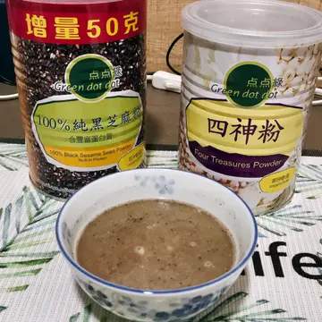 最近开始好注重健康,因为开始脱发😢讲起养生,其他人都会第一时间谂起食芝麻糊。但要日日食嘅话,都系点点绿嘅芝麻粉实际d。一日冲两次食,可以当作早餐and宵夜。但我其实都惊只系冲水会太淡,变左芝麻水🤣然后店员推介我可以加埋四神粉。四神粉质地比较浓稠,冲少d水就会糊糊地四神粉嘅功效主要系安心养神/安神养心(? 而且重点系无味道🤣可以完美配合芝麻嘅香味,增加呢碗芝麻水嘅质感。虽然都系钟意芝麻糊多d,但其实呢个都几好味。