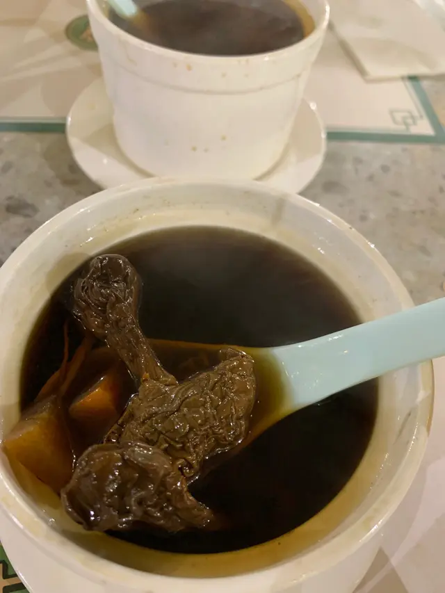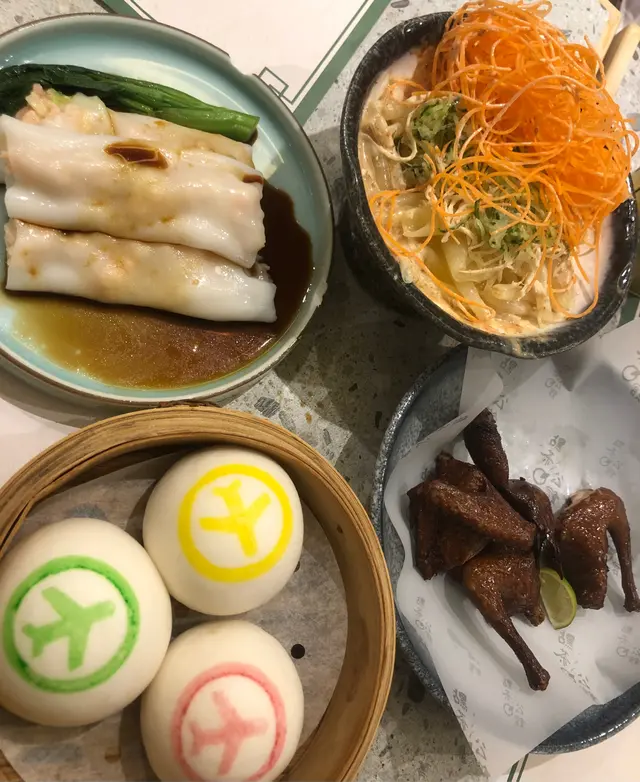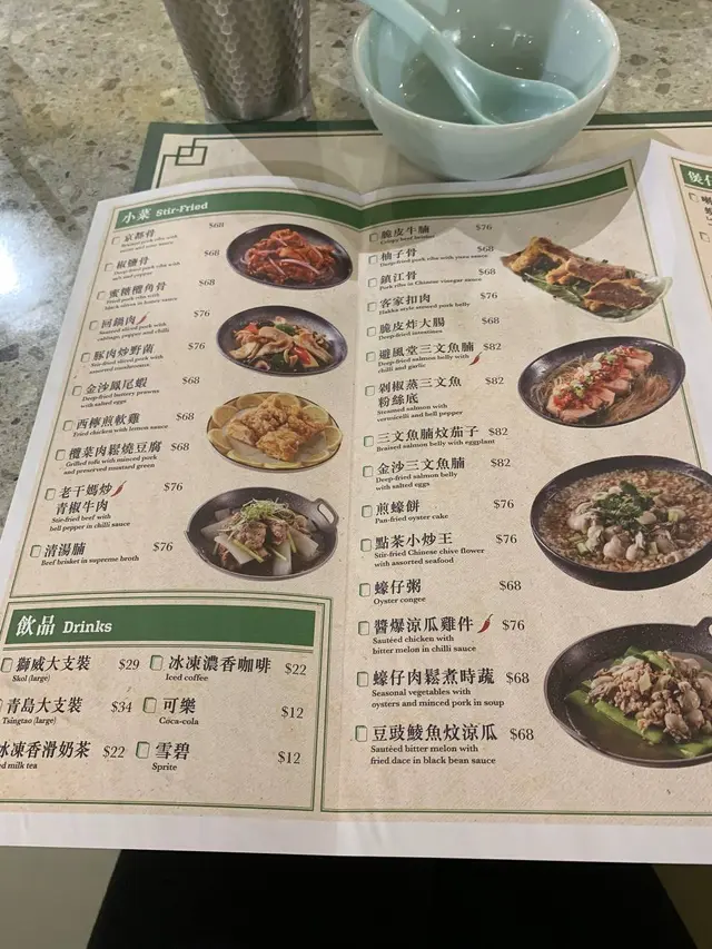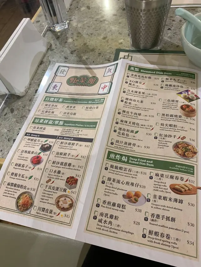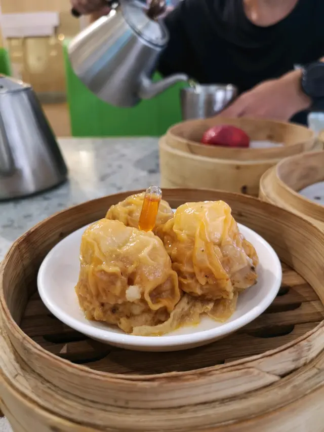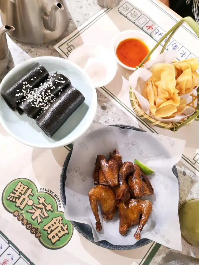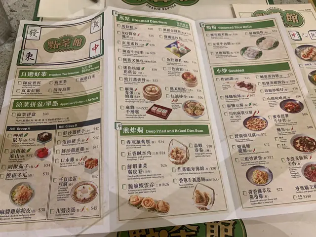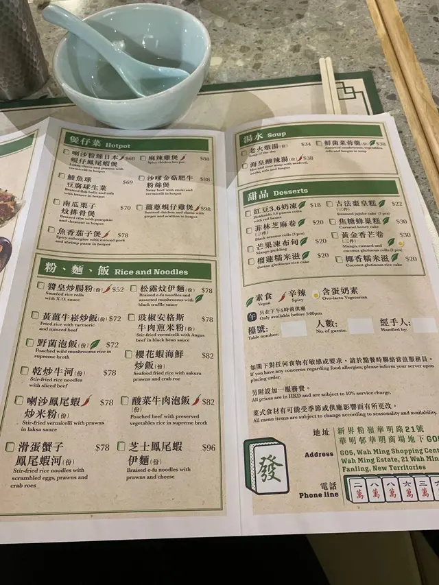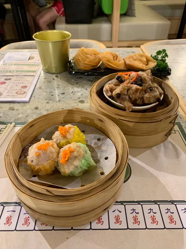 今日去粉嶺睇古跡,見呢間餐廳D點心幾有特色咁,坐得又幾舒服,所以去睇古跡前入來嘆個茶先😏去到大概係兩點鐘,餐廳坐滿晒人😳餐廳以麻雀為主題,地方幾闊落,枱同枱之間唔逼,幾好👍一坐低已經有侍應問飲乜茶🍵見佢D茶同出面嘅唔同,有D特別一陳皮普洱、蕎麥茶,福鼎白茶、紅棗紅袍、清香烏龍~淨係D茶已經幫佢加一加分😂茶芥每位 $8,我地揀左🍵蕎麥茶,非常清香,飲左好多杯😚餐牌兩版紙列晒出來,感覺上餐廳主打小菜,附以點心😂點解會咁講?!因為見佢張點心紙,都係小菜居多,連菜都要整到 $66一碟😳冇食點心一定有嘅盅頭飯,反而有大大碟嘅炒粉麵飯,呢點反而我唔係太鍾意🤦♀️最後我地叫左:🐷三色燒賣🐷豉汁蒸排骨🦐脆脆蝦雲吞🍵綠茶流心煎堆仔🐷叉燒腸粉🦪蠔仔粥先上嘅係🦪蠔仔粥 ($68)幾大份,🦪蠔仔又多大大隻😋唔加胡椒粉都好好食,呢個真係冇叫錯😏🍵綠茶流心煎堆仔 ($28)煎堆仔一份三件~外皮好香口,🍵綠茶餡唔膩,幾好食~不過唔流心,所以呢度扣左分🤷♀️🐷叉燒腸粉 ($30)腸粉幾煙韌,叉燒餡切細細粒,自己感覺一般般🤷♀️🦐脆脆蝦雲吞 ($26)一份三件,外皮好香脆😋點埋甜酸汁食冇得頂👍不過餡料略嫌少左D😢🐷三色燒賣 ($34)、🐷豉汁蒸排骨 ($30)🐷三色燒賣皮分黃、橙、綠色,幾吸睛~不過味道上食唔出有分😂肉餡幾飽滿👍🐷豉汁蒸排骨大大份,物超所值😏排骨幾滑,不過都幾鹹下🤦♀️墊底芋頭好淋,好食😋最後兩位埋單連加一 $255,都ok嘅~🍴食物上,大致都唔錯,D野都幾有特色嘅~但可能要幾個人一齊來,小菜點心每樣叫D會比較好😂💁♀️服務上,staff好有禮貌,收碟收得好快~一見到你隻碟食晒就會即刻來收🤣…查看更多