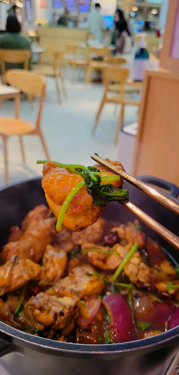 呢兩日又凍咗,想搵返啲熱辣辣嘅嘢食,朋友推薦我最食「鼎家喜筷」雞煲!鼎爺間「鼎家喜筷」開在海之戀商場3樓,交通方便,好岩約朋友。見到佢依家有個「無限幸福雞煲90分鐘」推廣好抵食!90分鐘內可「無限添加」秘製雞件!🤩佢個辣度都可根據自己口味選擇,但最少辣度系BB辣。仲可以免費加湯底打邊爐,套餐配送新鮮蔬菜1份,可以額外加火鍋配料,價錢實惠!雞煲材料有雞件、洋蔥、芫茜、辣椒,大大煲雞肉香味勁吸引!我地揀咗BB辣,溫和的微辣感帶著少少花辣麻,十分開胃!上枱後唔好開蓋再焗多幾分鐘,滾起後就食得。估唔到成煲雞有咁多雞髀雞翼,啖啖肉又嫩滑多汁,超級抵贊!食晒雞肉之後加湯就可以打邊爐啦,我哋叫咗響鈴、蓮藕片、雜錦丸各2粒(牛丸、魚蛋、香菇貢丸、墨魚丸)好鐘意蓮藕片切得夠薄,加入雞煲煮好煮,爽脆又入味。套餐可以每位28蚊無限任飲菊花薏米茶,洛神花茶。呢個菊花同薏米嘅組合好特別,清熱解毒又祛濕排毒,味道清清地又爽口,非常推薦!查看更多