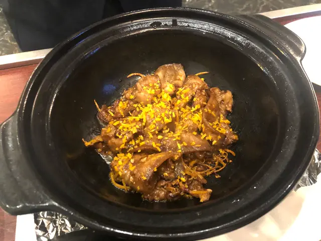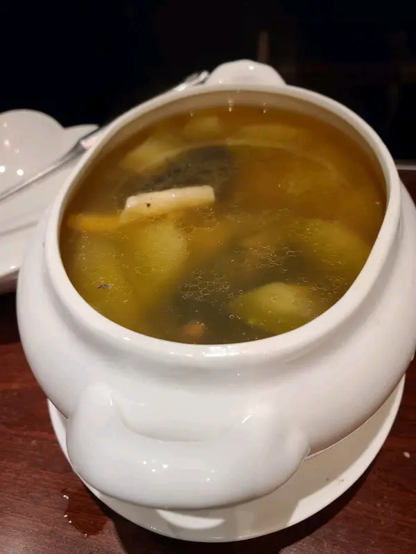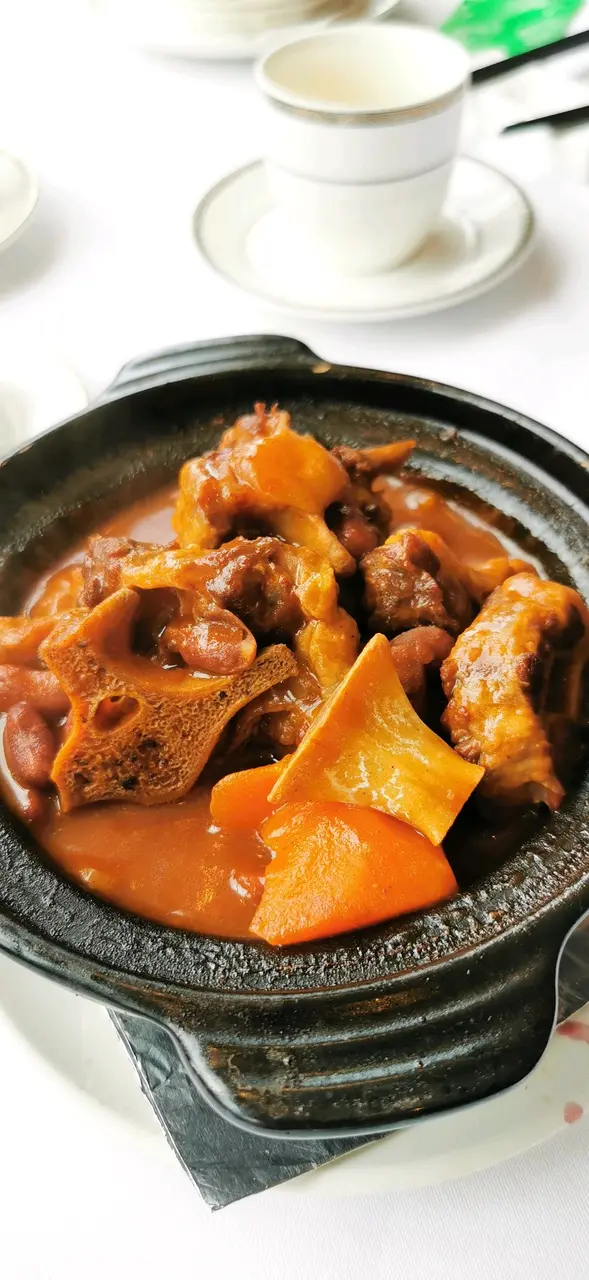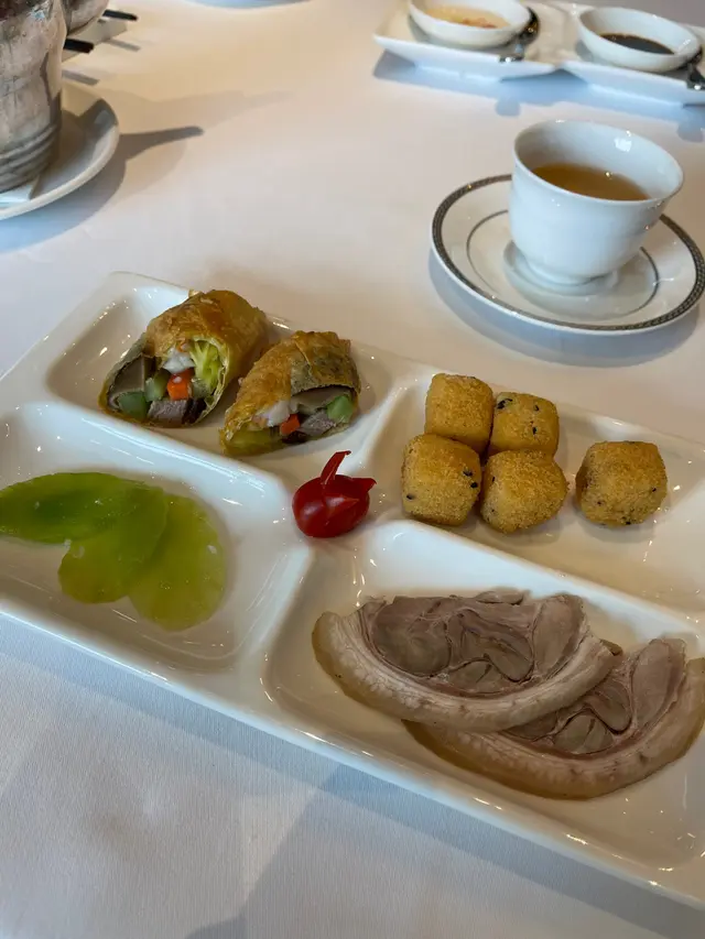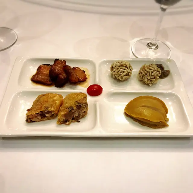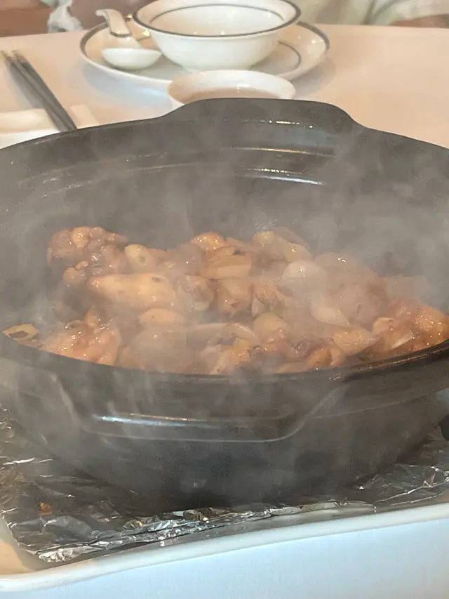 Dinner. I was a bit apprehensive, having heard mixed reviews about the restaurant. We had 4 appetizers, individually served: char siu, 米通鯪魚球, abalone, 鮮蝦火鴨腐皮卷. Manager explained that 豬肋肉 was used in making the char siu to give it more texture.避風塘炒蟹 was next. Can’t comment since I don’t eat crab. The others thought it was good. 杏汁豬肺湯- good.紫晶生炒骨- a fruity version: using plums, lime, dragon fruit to make the sauce; perfect sweet/sour balance. Breath of fresh air. 👍🏼魚香茄子燴杉斑- fish was very meaty, tasted fresh even after deep frying. Chef used 鮫魚 to make the salty fish, apparently went best with the aubergines.花甲浸時菜乞兒雞- my favorite dish of the night. Apparently the lotus leaf used to wrap the chicken with was specifically sourced. The chicken was then wrapped in thick layers of clay that’s been soaked in alcohol then put in the oven for a few hours. We were invited to bash open the layers of clay with a hammer. The lotus leaf trapped the meat jus perfectly, adding its own special fragrance. Aroma of the alcohol added even more texture. Meat was every tender.黃鱔焗飯- my brother’s favorite dish. I’m normally not a fan of eel, but it tasted fresh and sweet, not oily. Texture of the rice was very good. In summary: skilled chef. Would def return to try other dishes.…查看更多