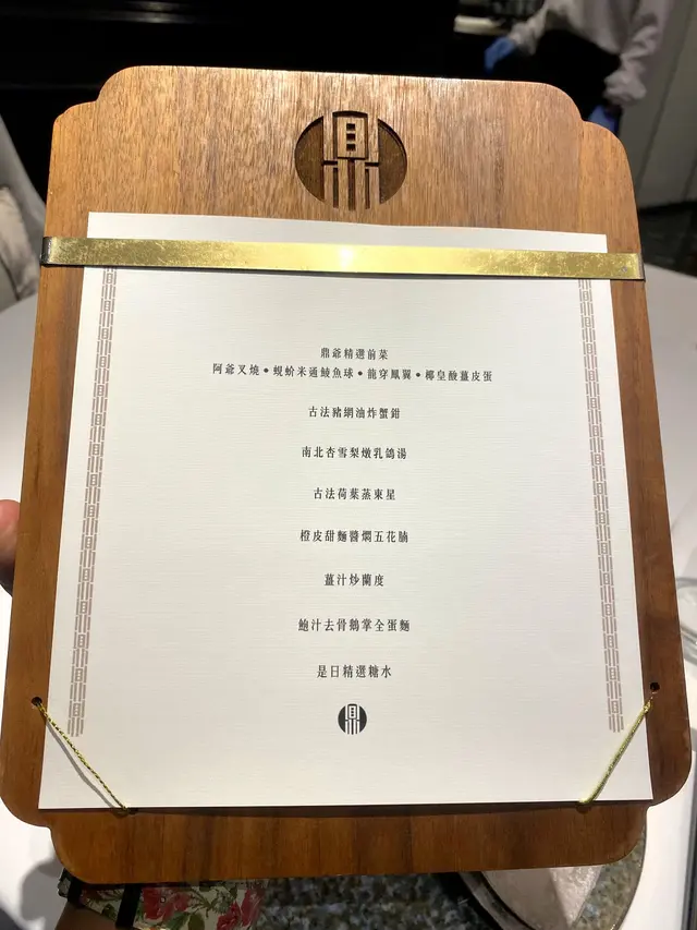 偶爾於電視觀看鼎爺的烹飪節目,看他烹製菜式均用盡心思,功架十足,一直令我欲罷不能,趁著11月時限聚令稍稍放寬,情不禁地致電預訂座位,想到餐廳品嚐一番,便,好好享受放鬆,一嚐美食。餐廳位於銅鑼灣 V point 21樓,乘坐升降機到達後,便首先於右手邊看見大型的鼎字店舖名稱和鼎爺的人形紙牌,內進走廊則設置有百子櫃放滿酒樽、酒杯,再來便看見擺放有各款紀念品售賣,經過阻隔的簾幕後,即進入大廳範圍,餐廳有五個圓形廂房,當天我們便被安排於中山廂房用餐。房內餐具排列整潔衛生,玻璃碟上擺放有摺疊好的蝴蝶結型餐巾,簡潔利落的純白佈置予人感覺舒適高雅,山水和字畫的擺設令整體富有中國風味,而桌面上亦有提供有茶水和三款醬汁以便客人使用。鼎爺精選前菜精選前菜有四款,分別是阿爺叉燒、蜆芥米通鯪魚球、龍穿鳳翼、椰皇酸薑皮蛋,叉燒口感鬆軟煙韌,香嫩多汁,肉味濃郁。蜆芥米通鯪魚球是指使用米通包裹整顆鯪魚球,入口外層鬆脆酥香,內裏煙韌彈牙,鯪魚味出眾香濃。龍穿鳳翼就是雞翼,內餡包裹著西芹和蘿蔔絲,雞翼肉香嫩滑,帶有肉汁,內裡則清甜爽脆。椰皇酸薑皮蛋是把皮蛋配搭椰子肉和酸薑,其口感芳香彈牙,椰子肉軟嫩鮮香,配搭酸薑則用作緩和皮蛋的膩滯感。古法豬網油炸蟹鉗油炸的蟹鉗色澤金黃,外型圓潤大顆,突出的蟹鉗可供顧客拿取食用。蟹鉗口感酥脆結實,爽口彈牙,內餡的蟹肉量眾多,味道鮮甜香嫩,沾上甜酸醬同食,更增添風味。南北杏雪梨燉乳鴿湯乳鴿湯清澈見底,色澤淡黃,油份可見甚少,較為健康,使用半只乳鴿、一個雪梨、瘦肉、南北杏燉製而成,飲用時稀薄不膩,味道香甜濃郁,且有著清潤滋補的功效。古法荷葉蒸東星東星魚色澤紅中有白,帶著斑點,師傅於魚肚開邊後,使用大塊的荷葉包裹著整條魚,再加入蔥絲、薑絲、醬油一同清蒸,入口鮮味十足,其肉質結實彈牙,魚味濃郁,嫩滑鮮甜,味道富有荷葉清香,同時帶有淡淡的醬油和辛香薑味。橙皮甜麵醬燜五花腩片狀的五花腩是半肥瘦的,使用甜麵醬燜製,口感肉味出眾,鹹香入味,特意配搭橙皮製作,用意是緩和鹹味,可見製作相當富有心思。伴碟的西蘭花爽口清脆,香嫩鮮甜。菜式額外附贈有白飯,配上鹹鮮的五花腩食用,一鹹一淡的配搭甚是相配,而且亦能減淡鹹膩。蘆筍吃過數款主食後,餐廳便會為客人送上一碟蘆筍,用作清理口腔味蕾,以為下一道菜作準備。蘆筍色澤碧綠,清脆爽口,沒有多加調味更能帶出原有鮮味。鮑汁去骨鵝掌全蛋麵菜餚端上時香氣撲鼻,麵條使用全蛋麵,口感幼身順滑,柔韌微硬。鵝掌已貼心地去骨,以讓客人更方便享用,鵝掌肉質軟腍滑溜,鵝味香濃,膠質豐富。兩款食材均盡吸飽汁精華,整體入味鮮香。旁邊配搭點綴的菜心碧綠新鮮,爽脆清甜。是日精選甜品是日的精選甜品是杞子圓肉紅棗燉桃膠糖水,其色澤澄澈剔透,飲用時清甜潤喉,甜度適中,且能清楚嘗到各款食材的原有鮮甜。碗中盛載有圓肉、紅棗、桃膠,可見食材用料豐富,真材實料,而且有著滋潤補血等功效。總結而言,餐廳裝潢高雅貴氣,富有中國風味,菜餚賣相精緻美觀,用作拍照打卡亦很是適合,味道製作高質用心,可見下足不少心思功夫,食材亦貨真價實,是與家人朋友吃飯的好地方。…查看更多