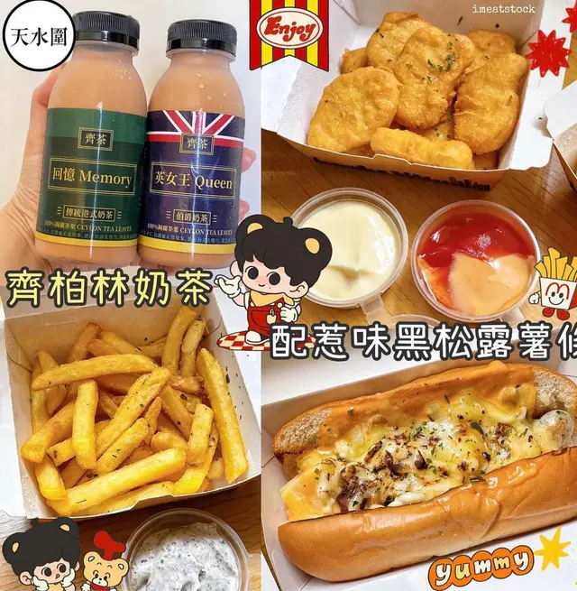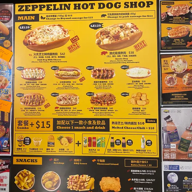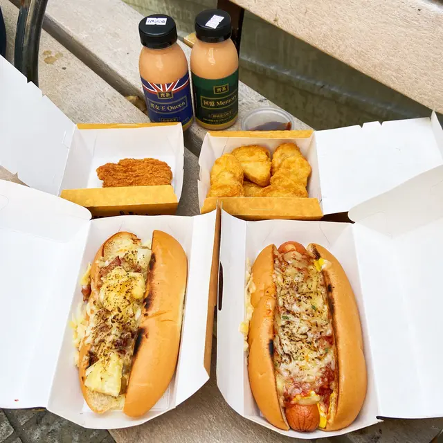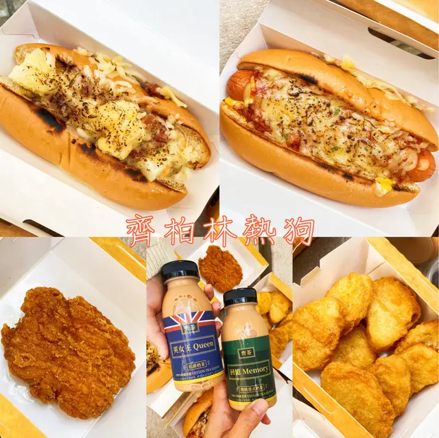 相信齊柏林係一間咩餐廳都唔需要我介紹喇☺️~佢哋喺全港切有多間分店,主要係做外賣嘅熱狗、小食,早前見到佢哋同燒賣皇后corssover但冇機會食,今次一於嚟食吓佢哋嘅熱狗、小食,仲有同 #齊茶 合作嘅兩款奶茶🤩🌭 火炙芝士辣肉醬熱狗 ($42)🌭 澳式風情熱狗 ($38)熱狗即叫即整,出爐香噴噴🥰 辣肉醬熱狗嘅香腸又粗又大條,啖啖肉勁正!芝士同肉醬都好香~澳式風情有菠蘿、芝士、煙肉,甜甜哋,係朋友嘅favourite❣️🐥 辣雞塊 ($15/1;$28/2)🐣 9件雞 燒烤醬 ($20)辣雞塊同9件雞都係即叫即炸,熱辣辣又脆卜卜🤩! 我鍾意辣雞塊,咬開仲係冒煙㗎!辣辣哋好開胃好爽! 9件雞比起M字頭嘅雞塊正好多,皮又脆啲,肉又滑啲🤤 稍為扣分係佢嘅雞塊比較薄件令口感冇咁正,但佢都好大件㗎!🧋 齊茶: 「英女皇」($20)、「回憶」($15)「英女皇」係英式奶茶,即係伯爵茶奶茶,佢嘅茶清香回甘😙;「回憶」就係港式奶茶,即係錫蘭奶茶,係經典嘅港式滋味😋 我就鍾意英女皇嘅伯爵茶夠清澈,朋友就鍾意回憶嘅經典奶茶💛查看更多