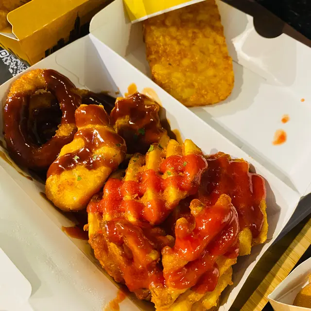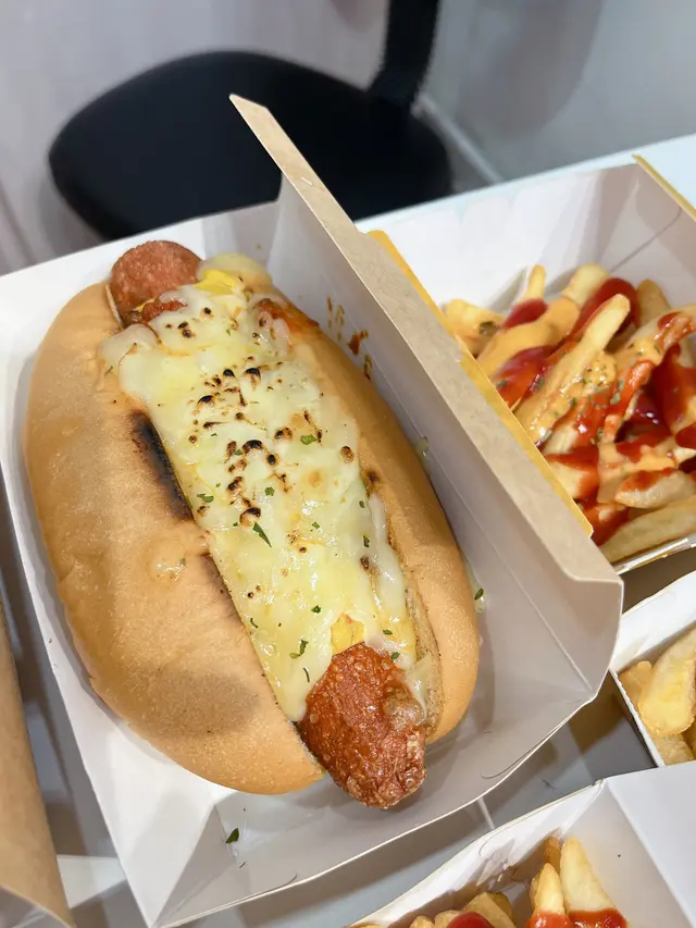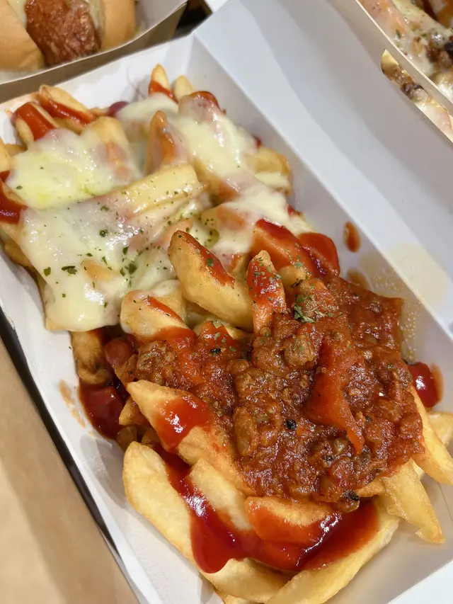 原來呢間熱狗店全香港有咁多間分店。去到九龍灣唔知食咩好,又已經過咗六點,政府話冇得堂食。好在有間熱狗店可以外賣。叫咗三個熱狗,一個跟餐。加$15可以有小食同埋嘢飲。另外兩個熱狗唔跟餐因為想食煙肉芝士薯條同埋辣肉醬薯條。跟餐嘅話冇呢兩個口味。同埋跟餐嘅薯條都係細薯條。不過可以自由配搭加少少錢變大薯條加芝士醬。三個熱狗熱辣辣,新鮮製造好好味。每一隻熱狗都幾大隻下。基本上一個熱狗同埋一個薯條已經好飽。大食啲嘅話,叫多一隻熱狗一定飽到頂住。都唔算貴。大概$60至$70就搞掂。最鍾意食佢哋個紐約熱狗。查看更多