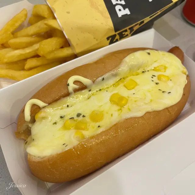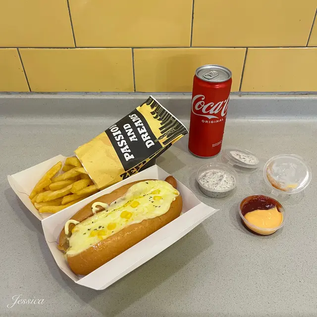 棉被芝士熱狗、細薯條、黑松露蛋黄醬、可樂