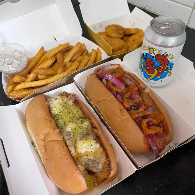 嚟到呢間熱狗店,空氣中已經飄嚟濃濃嘅煙燻同炸物香味🌭。首先搶眼個真係火灸芝士辣肉醬熱狗,豐富嘅芝士澎湃到令人眼前一亮,啖啖肉醬嘅酸甜辣意外地撲鼻而來,同埋個腸仔口感彈牙,外層嘅包脆卜卜,真係討好到唔得了!跟住試埋澳式風情熱狗,醬料豐富同調和得宜,一啖下去就知芝士、煙肉、菠蘿同埋千島醬perfect match,味道層次豐富到飛起,繼續咯咯吱嘰咬落去,簡直開心到講唔出嚟。話咁快就到Chok Chok薯條,外層炸得金黃鬆脆,一啲都唔油膩,入口即溶,椒鹽味剛剛好,真係揸得好好,止唔住手咁食。啲洋蔥圈就新鮮熱辣辣,內裏洋蔥甜美,外層麵衣脆嘅嘩啦啦響,咬落去就似天樂咁悅耳。咁多咁豐富嘅口感同味道,食完真係會心滿意足,心思思想下次再嚟。🌽嘅粟米杯呢,夠晒爽口清新,係食罐頭粟米前所未有嘅享受,返屋企一邊啖啖香甜,一邊睇下電視,呢個下午過得又滿足又悠閒。🥤英女王伯爵奶茶阿,嘩,喺澀味中帶甘香,解膩得嚟又醒神,飲完真係覺得皇室嘅優雅。…查看更多