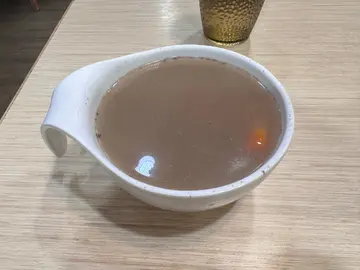 今天中午在太子附近揾食,想起两间有名的又一直未有机会。永合x 和齿留香。因之前朋友家中用餐,其中叉烧是其中加料)齿留香)。一试难忘。今天就决定去这店寻找昔日味道。Order 咗半肥瘦叉鹅饭,有汤有餐冻柠茶,共$55+$8+$4 共 $67先来了个汤,热辣辣,真材实料