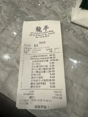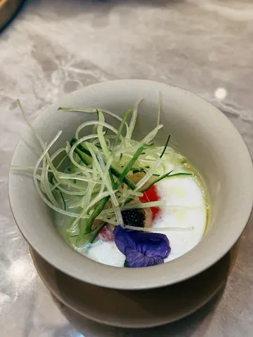 餐厅:龙亭地点:中环兰桂坊菜式:铁板烧餐牌:沙律,前菜,铁板海鲜,铁板肉类,铁板烧料理,铁板炒饭,甜品,多款套餐。今日每人叫左个高级厨师发办套餐(十一点)$688另加一。包括:1. 招牌沙律招牌沙律系新鲜有机沙律杂菜,由一片熟成挪威烟三文鱼包住,面头加上少少咸香格陵兰黑鱼子酱。配有酸咪咪哥伦比亚龙珠果一粒,同车厘茄三片。伴有意大利黑醋三点同日本野菜汁三点。口感味道系外咸香内爽脆,好特别。2. 前菜三点前菜三点,右至左分别系三色葱。中间系熟成三文鱼,加上葱花,滑溜鱼味浓。最左系三文鱼鲛海草昆布,三文鱼鲛骨胶原丰富,好爽脆,食落味道酸咪咪,好开胃。3. 鱼子酱兰王温泉蛋鱼子酱兰王温泉蛋用中式茶杯上枱,好特别。捞埋先食,温泉蛋滑溜冰冻,加上够份量鱼子酱,松露好香浓,面头加上青瓜丝同食用花点缀。4. 刺身一品二选一。时令鱼子酱生蚝新鲜多汁唔会太咸,配海盐泡沫味道好夹,加上少少三文鱼籽带黎咸香味,伴有柠檬,唔洗加都得。加埋食用花卖相一流。鲷鱼刺身一客三片,好鲜美,伴有日式芥末。5. 铁板海鲜两品四选二。每两款海鲜一齐上枱, 伴有自家制虾膏海鲜酱同炸蒜。慢煮鲍鱼一客两只,已除壳。口感超弹牙,好鲜甜。虎虾好大只,已经切开两件方便食用。虾肉爽脆,简单加上黑椒已经好好味。白鳗一大片,脆皮同弹牙,加上香甜黑醋更加开胃。日本元贝整得㶶面,食落啖啖肉,食材好新鲜,肯定系刺身级,下面有一件意大利黄瓜。6. 铁板料理4选1,两碟肉类都伴有可爱萝卜仔,日式芥末,黑盐同炸蒜粒。澳洲牛柳粒一客八粒, 系半生熟,肉质非常软腍,又有牛味,正。宫城厚切黑豚扒一块切开8件方便食用,烧得㶶面,食落外皮少少脆,入面都好嫩,猪味浓。7. 菊花豆腐白面豉汤好大碗,入面居然有一大块花胶,浆嘴又有花胶味,非常惊喜。仲有昆布同豆腐丝。个汤味道咸度适中,份量好多。8. 黑松露海鲜炒饭黑松露海鲜炒饭卖相一流,一满碗热白饭底捞有丰富黑松露酱,面头加上一只㶶面去壳虾,三文鱼籽,蟹籽同葱花。食落啖啖爽脆,口感味道一流,食完应该实饱。9. 时日甜品时日甜品系黑糖燕窝柚子雪芭,有一球冰冻酸酸甜甜柚子雪芭,面头加上好多燕窝配黑糖酱。名贵之余又解腻,为呢餐画上完美句号。另外叫左一份前菜。枝豆 $38 另加一暖暖枝豆面头加上少少盐花,质素唔错。今餐食物质素高,铁板烧真系好味,而菜式有心思,惊喜不断。最欣赏呢度服务员会细心介绍每一道菜式同酱汁。今餐大大满足!大部分位都系吧枱,可以望住师傅整铁板烧比你。…查看更多