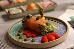 。此外,从身旁的冻柜可见,有多款酒类供应,好此道之客人可小酌几杯喔!首先登场是「招牌沙律」,卖相十分精致漂亮,烟三文鱼包裹着新鲜有机沙律杂菜,添上少少咸香格陵兰黑鱼子酱作点缀,佐以意大利黑醋及日本野菜酱,味道既清新,又有个性