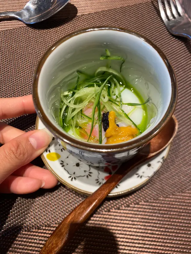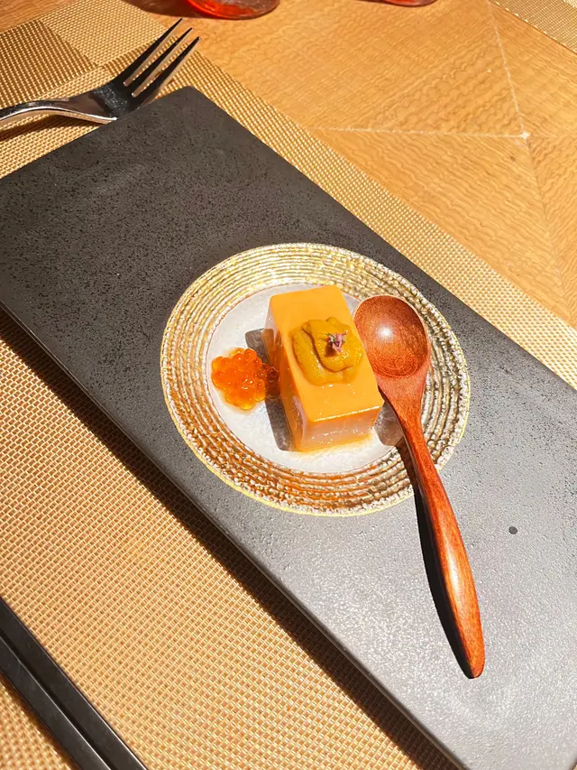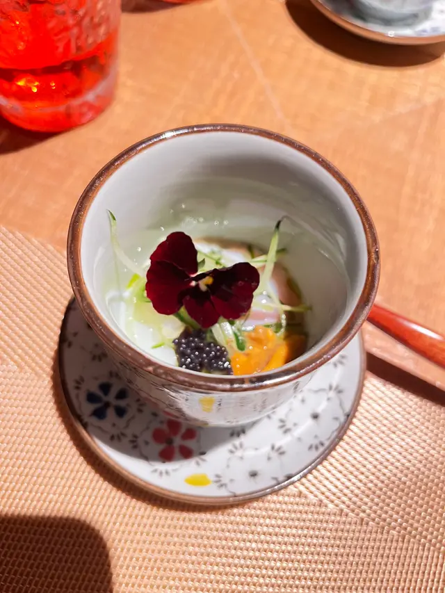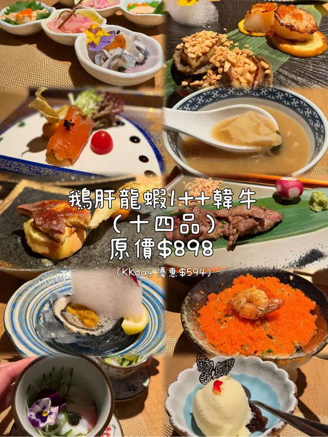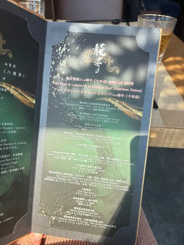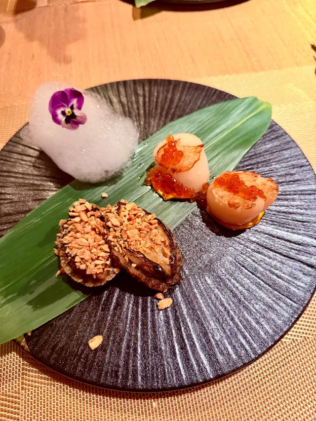 上次去過佐敦“龍亭”,好喜歡師傅在我面前即燒即遞到給我,那種即煮即食的感覺真好👍今日去尖沙咀山林道18樓“龍亭”,環境一流,遠眺香港美景,盡收眼簾😍order了鵝肝韓牛十四品$898三文魚牛油果他他三色洋蔥三文魚頭軟骨煙燻三文魚沙律卷配魚子醬,黑醋,還有龍珠果解膩白松露魚子醬秘製溫泉蛋鵝肝多士配蛋白菠蘿醬,鵝肝煎得外脆內軟,入口即溶,夾著蛋白菠蘿醬,能減卻油膩感,油香四溢,齒頰留香😋海膽生蠔加上蝶豆花泡泡,擺盤視覺上都更美,加少少檸檬汁令生蠔鮮味更特出🤩兩款海鮮:選了元貝和鮑魚,三文魚籽鋪上元貝上,因三文魚籽略帶咸味,配上鮮味的元貝,絕配👍鮑魚腍糯,清酒浸過嘅鮑魚更濃更香🤩薄燒韓牛,油花不多,口感細膩,肉質嫩滑😋花膠鰹魚面豉湯中日fusion 👍花膠有口感三文魚籽黑松露炒飯色澤非常吸引,每一口都有爆口的三文魚籽,每一口都滿滿黑松露的香氣,滿腹滿足😍柚子雪葩配上紅糖燕窩,紅豆爆珠每一道菜都用盡心思配搭,從擺盤到味道都做到足,從環境到服務都令我非常滿意👍下次一定要book晚餐,再欣賞這裏的夜景😍…查看更多