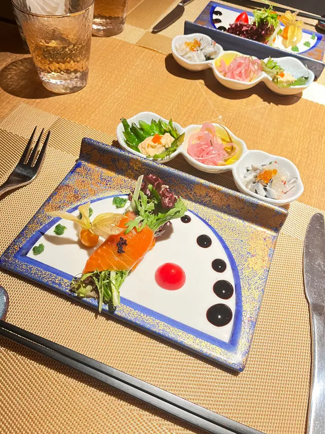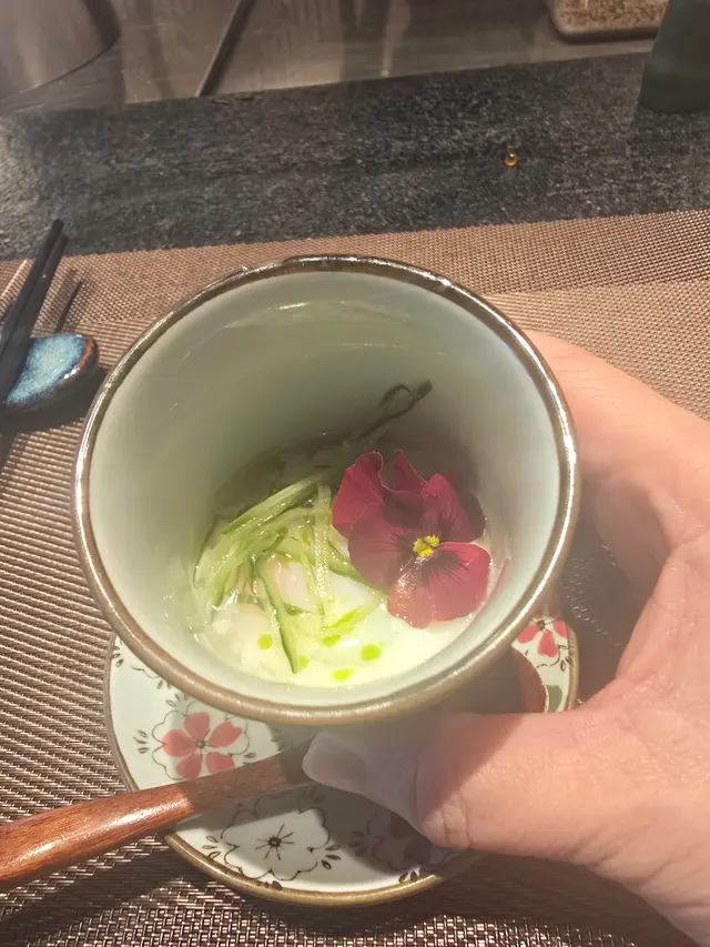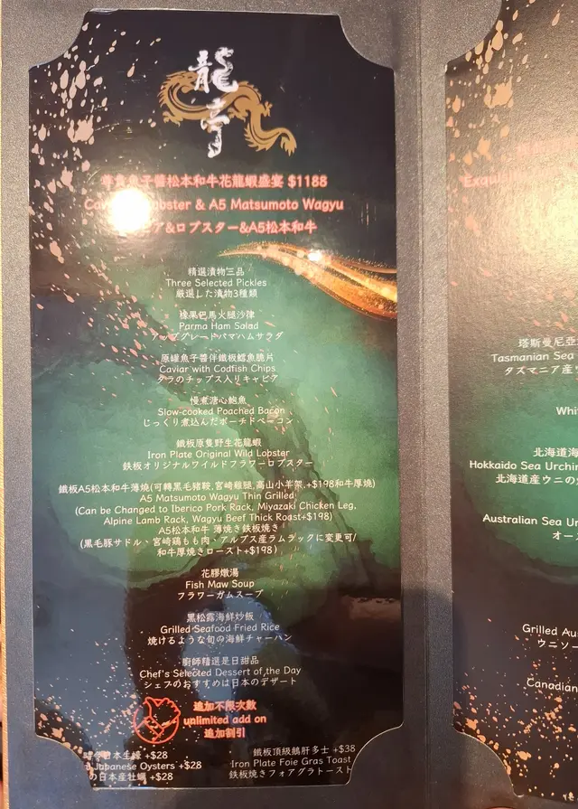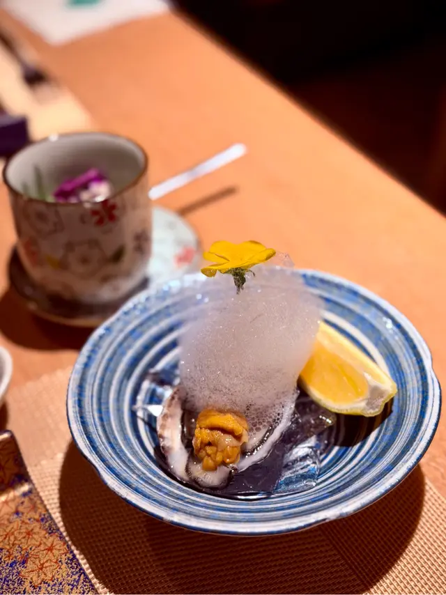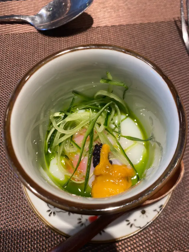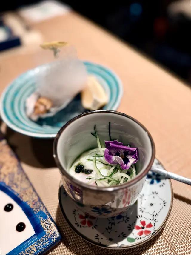 上次去過佐敦“龍亭”,好喜歡師傅在我面前即燒即遞到給我,那種即煮即食的感覺真好👍今日去尖沙咀山林道18樓“龍亭”,環境一流,遠眺香港美景,盡收眼簾😍order了鵝肝韓牛十四品$898三文魚牛油果他他三色洋蔥三文魚頭軟骨煙燻三文魚沙律卷配魚子醬,黑醋,還有龍珠果解膩白松露魚子醬秘製溫泉蛋鵝肝多士配蛋白菠蘿醬,鵝肝煎得外脆內軟,入口即溶,夾著蛋白菠蘿醬,能減卻油膩感,油香四溢,齒頰留香😋海膽生蠔加上蝶豆花泡泡,擺盤視覺上都更美,加少少檸檬汁令生蠔鮮味更特出🤩兩款海鮮:選了元貝和鮑魚,三文魚籽鋪上元貝上,因三文魚籽略帶咸味,配上鮮味的元貝,絕配👍鮑魚腍糯,清酒浸過嘅鮑魚更濃更香🤩薄燒韓牛,油花不多,口感細膩,肉質嫩滑😋花膠鰹魚面豉湯中日fusion 👍花膠有口感三文魚籽黑松露炒飯色澤非常吸引,每一口都有爆口的三文魚籽,每一口都滿滿黑松露的香氣,滿腹滿足😍柚子雪葩配上紅糖燕窩,紅豆爆珠每一道菜都用盡心思配搭,從擺盤到味道都做到足,從環境到服務都令我非常滿意👍下次一定要book晚餐,再欣賞這裏的夜景😍…查看更多
