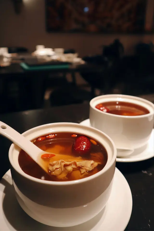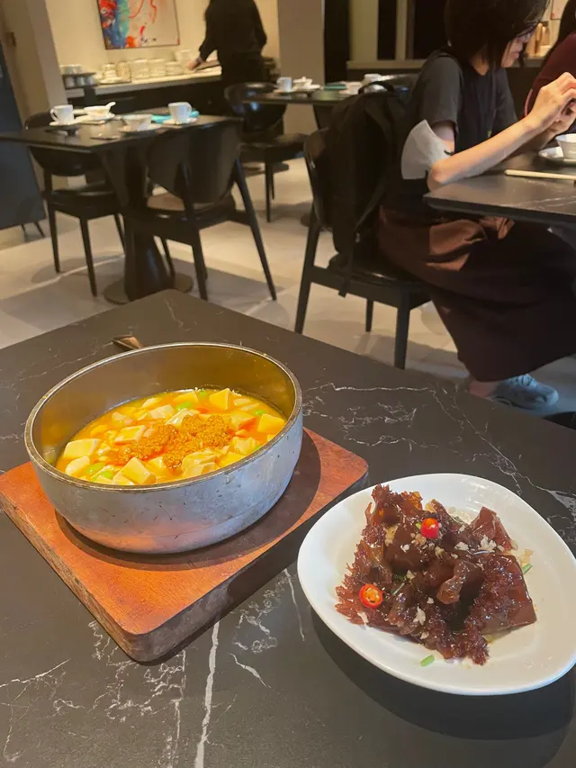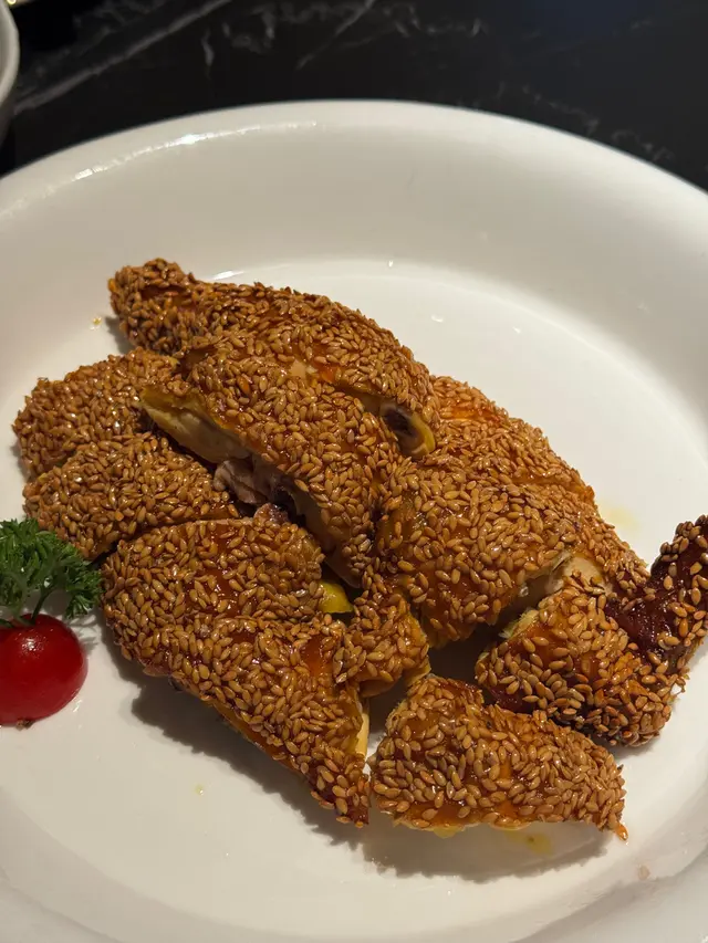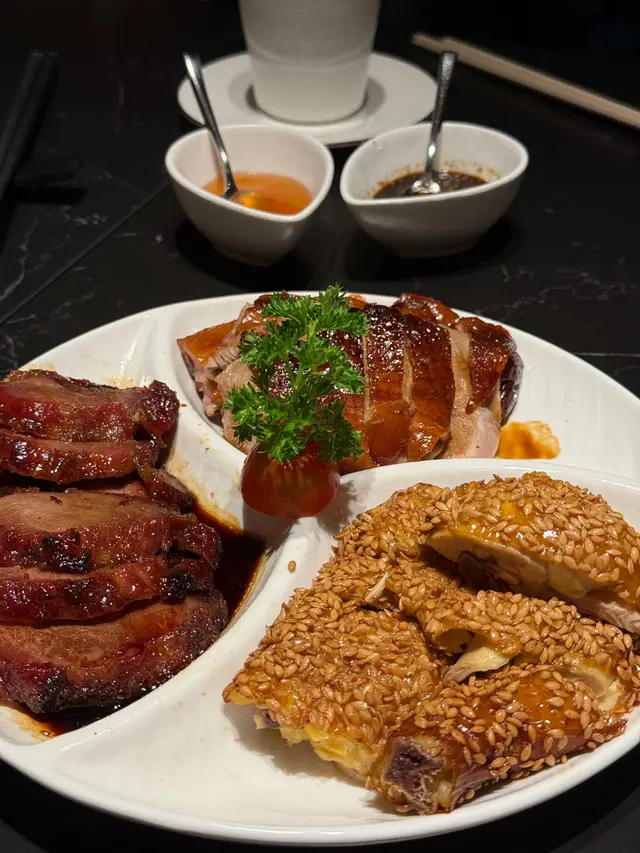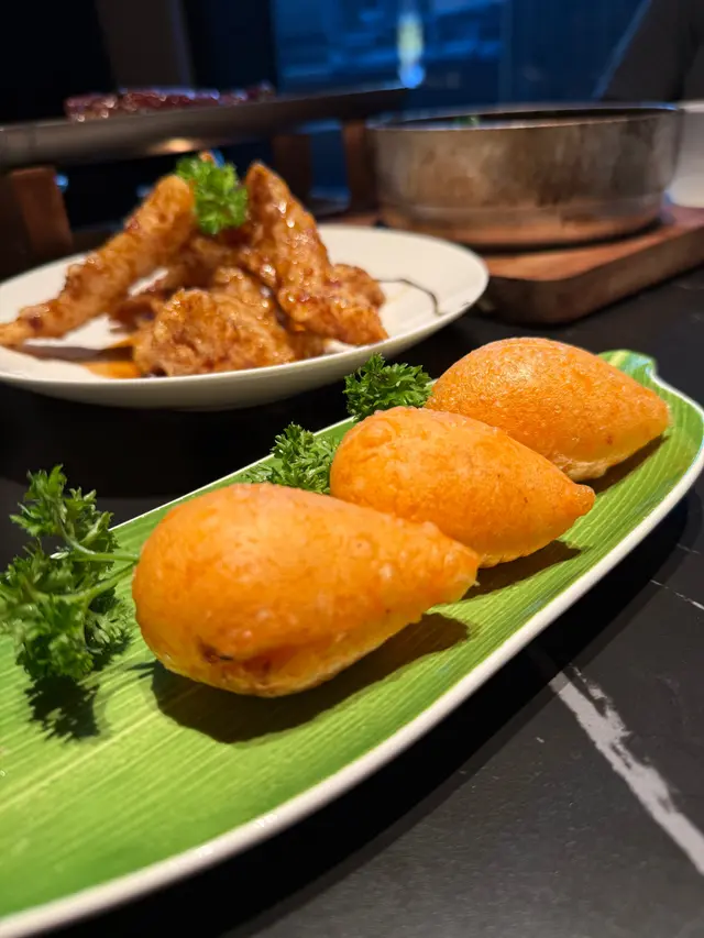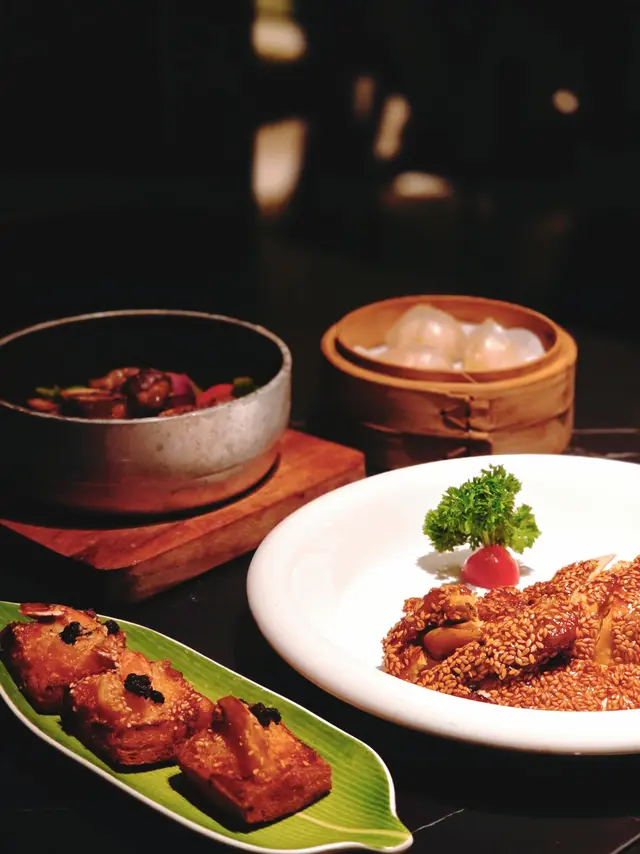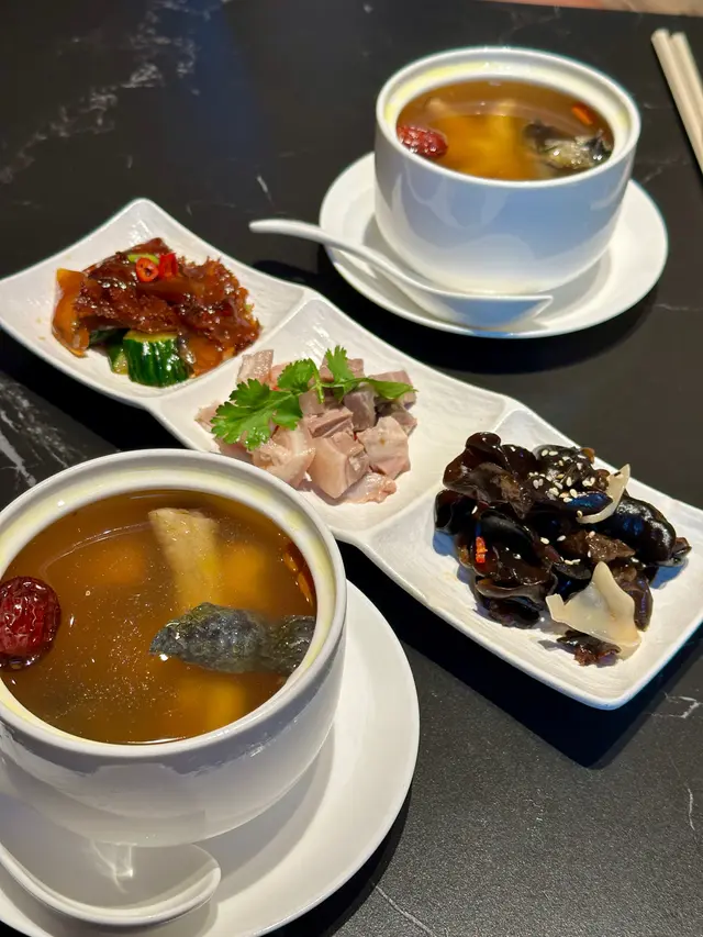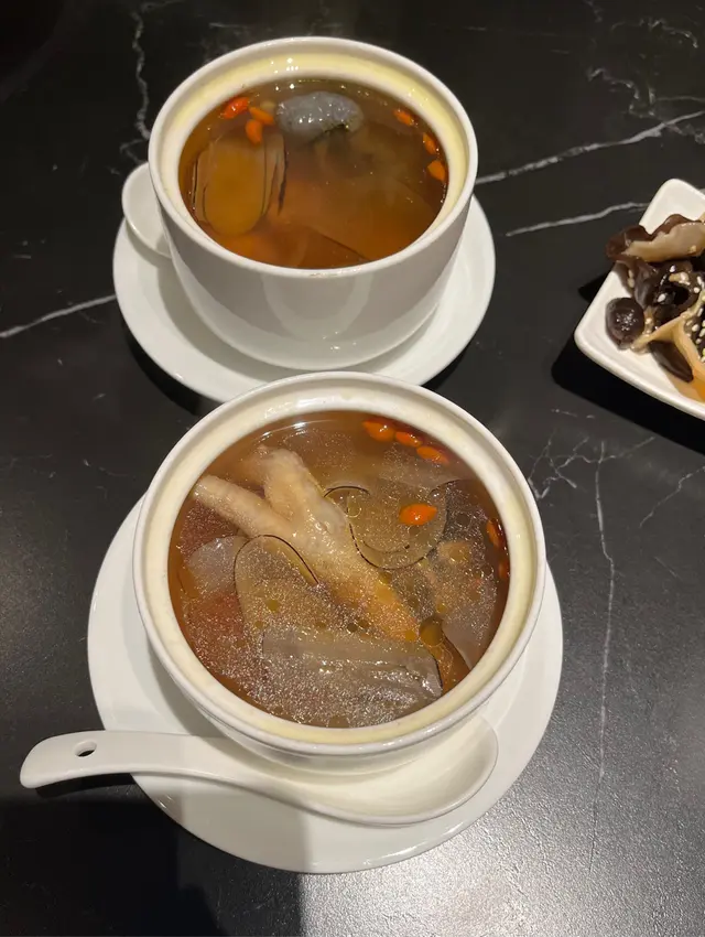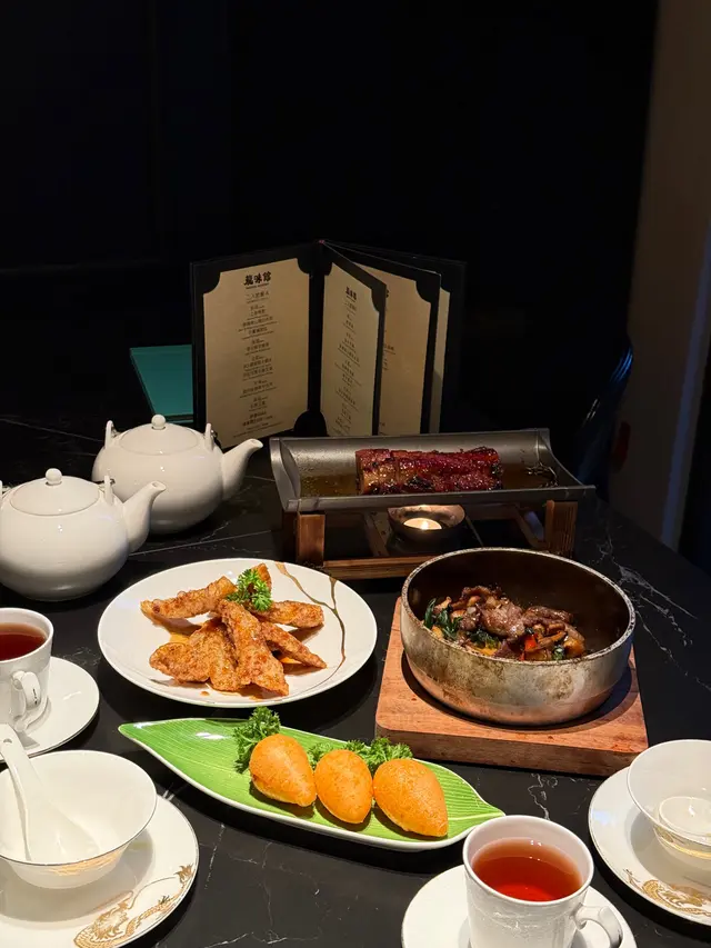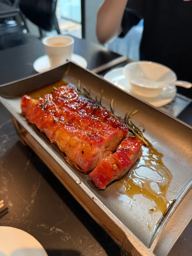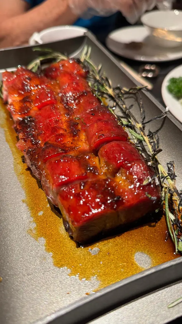 好耐無食中菜,今次揀左間主打中式點心同精緻中菜餐廳🍴最近仲推出咗兩款二人套餐,有成八道菜咁多,真係好抵食!二人套餐 C $598前菜上海烤麩經典嘅上海冷盤小食,以烤麩作為主料,加上木耳、香菇等等嘅配料製成。每樣食材都吸收哂醬汁,食落口感豐富,味道香濃。芥末香脆萵荀萵荀炸到金黃香脆,加上芥末令到萵荀食起上嚟更惹味,食落口感爽脆同時帶點咸香。西班牙黑毛豬叉燒叉燒烤到外層有點焦香,同時色澤亮麗,非常吸睛。食落肉質嫩滑多汁,口感好juicy,醃得非常入味。燉湯姬松茸竹笙燉雞湯飲落雞味香濃,姬松茸令個湯更鮮。主菜咕嚕蝦球蝦球好大隻,食落口感滑溜彈牙,鮮味十足,醬汁味道酸酸甜甜,非常開胃。水煮牛肉上菜時香氣撲鼻,麻香味十足,牛肉份量都幾多,食落口感非常嫩滑,鐘意食辣嘅朋友絕對唔可以錯,唔太食得辣嘅朋友亦可要求少辣。主食點心拼盤呢間餐廳嘅點心非常精緻,啱哂打卡影相。點心拼盤有五款點心,包點同炸物都有,可以一次品嘗哂餐廳最出色嘅點心,真係超滿足。甜品芒果布甸食落口感滑溜,甜度啱啱好,仲有好多芒果。木瓜燉雪耳飲落好香甜嘅南瓜味,雪耳好足料,滋補又美味。…查看更多