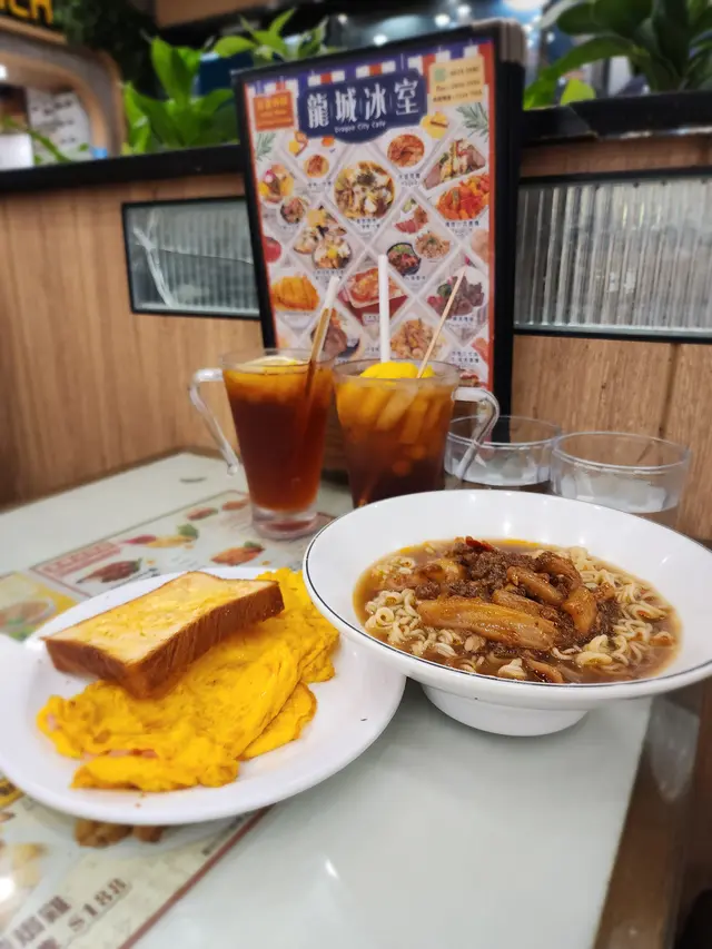 [龍城冰室].一出旺角地鐵站🚉就見到大大隻字龍城冰室🤭🐉 嘩 好彩我早少少到 ت我一坐低就即刻見到出面好多人排隊呀🤯.🌟常餐 — 招牌秘製香辣魷魚公仔麵🍜嚟茶記 識食一定食常餐😌😌次次都沙嗲牛麵? 試吓呢度既招牌魷魚🦑麵用左秘製調味 少少辣但非常香口 🌶️ 魷魚🦑爽口彈牙 口感豐富又有層次☺️. 🌟韓式泡菜魚片花甲豆腐石鍋 🍲熱氣騰騰🍲🔥 泡菜香氣濃郁 魚片鮮嫩 花甲鮮甜 🐟 豆腐柔滑吸晒啲汁超入味石鍋保溫效果好好 ♨️茶餐廳都做到韓式料理真係好勁👏🏿 .🌟焗芝士雞扒意粉🧀🐓🍝芝士融化的香氣配上酥脆嫩滑雞扒🐔 芝士香濃拉絲 意粉彈牙入味 焗烤後表面微焦 好滿足🤤🤤.🌟滑蛋叉燒蝦球飯 🍳🦐 蛋香滑嫩 叉燒甜香入味 🤤🤤蝦球鮮彈Q脆 米飯粒粒分明 🍚 .🌟榴槤菠蘿包🍍🥯 創意十足‼️ 菠蘿包的酥脆外皮加上濃郁的榴槤餡香氣飄飄👃 鍾意榴槤嘅一定唔可以錯過😌🤭.香港茶餐廳食物種類越來越多😎😎除咗基本嘅常餐之外仲有多元化多國菜🇨🇳🇩🇰🇩🇪🇯🇵香港茶記冇得頂呀🤡🤡.@dragoncitycafe.hk📍: 香港旺角亞皆老街65號旺角新之城地舖.…查看更多