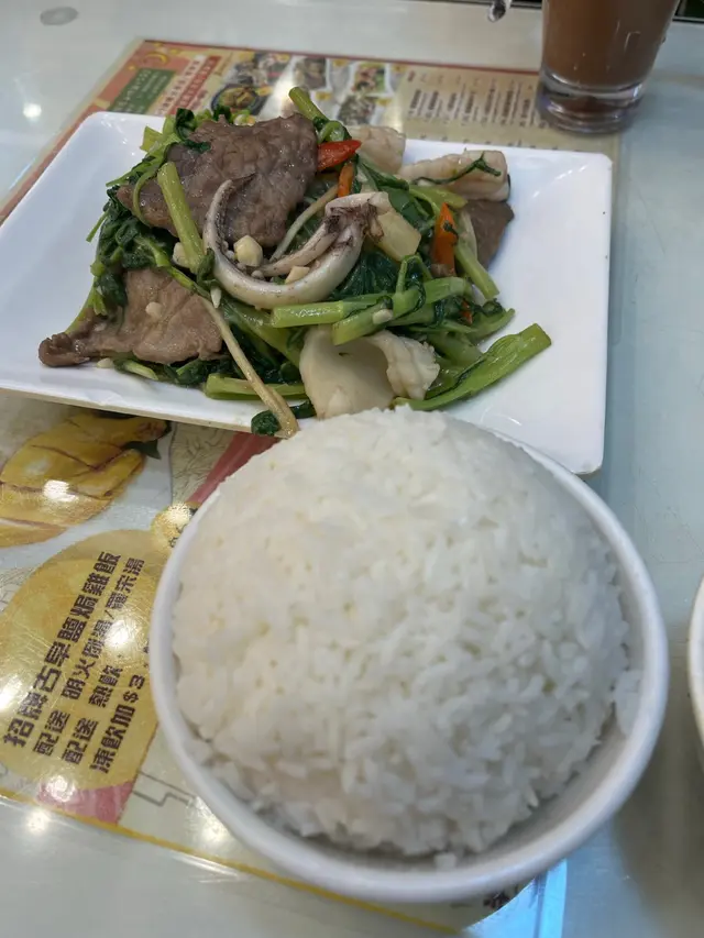 蝦醬炒通菜牛肉鮮魷