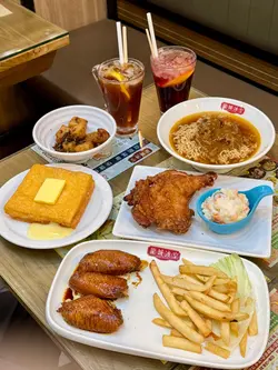 来到香港当然要食地道茶餐厅啦!我最爱就是吃下午茶!食我最爱的西多士!📌芝士流心西多士今次试试新嘢!一切下去就有爆酱芝士加炼奶!外脆内软的西多士真系滋味无穷📌脆炸鸡髀伴沙律下午茶必须食即炸!鸡皮很脆而肉质很滑嫩又爆汁!沙律亦很解油腻👍🏻📌沙爹牛肉公仔面超浓味沙嗲酱配上滑身的牛肉!识食一定必配出前一丁!最意想不到系下午茶竟然免费配一个小食!我就拣咗XO酱炒萝卜糕😋每颗萝卜糕都被XO酱包裹着很惹味!📌瑞士汁鸡中翼拼薯条瑞士汁很入味,而鸡皮很Q弹!必食!📌必饮冻柠檬茶👍🏻 冻柠檬利宝纳亦很推荐🌟每个下午茶餐都配一杯饮品,但系冻饮或特饮,要另外加钱🌟…查看更多