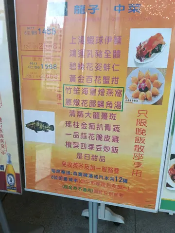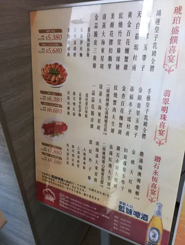 2.翡翠蚌仁玉带子3.红烧鲍参鲨肚翅足料装完六碗都仲有一半余下,十份大份4. 百花炸酿蟹钳5. 天白花菇 瑶柱甫6.原只鲍鱼扣波兰大鹅掌7. 清蒸金花尾龙趸,8. 一品蒜花脆皮鸡9. 瑶柱蛋白炒饭10.流沙包,[无哂 寿包,转做流沙包]即叫即蒸,热辣辣虽然唔算好流质,但真系十分新鲜…Read More