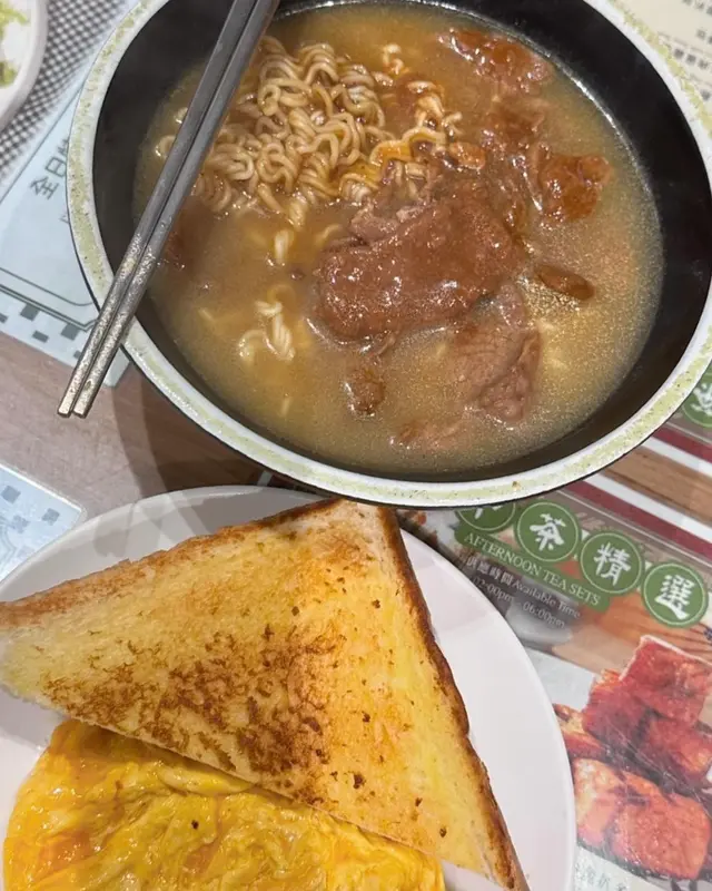 今日同屋企人去銅鑼灣覆診,去附近食咗早餐先上去見呢間門面整潔光猛又有位就食佢沙爹牛肉公仔湯麵配炒香滑北海道走地雞蛋和牛油厚多士雞蛋真係幾香滑 蛋味濃多士夠香口,又厚身沙嗲牛肉公仔麵🍜沙嗲嘅香味極多濃郁牛肉夠軟腍 公仔麵滿滿沙嗲湯底英式早餐🍳司華力腸、煙三文魚、炒蛋、蕃茄、焗豆、多士、雜菇等煙三文魚用心上碟 砌成花花咁茶餐廳都有得食英式早餐 都好特別份量女士食得飽環境整潔,座位夠鬆動坐得舒服 價錢同一般近茶餐廳差唔多查看更多