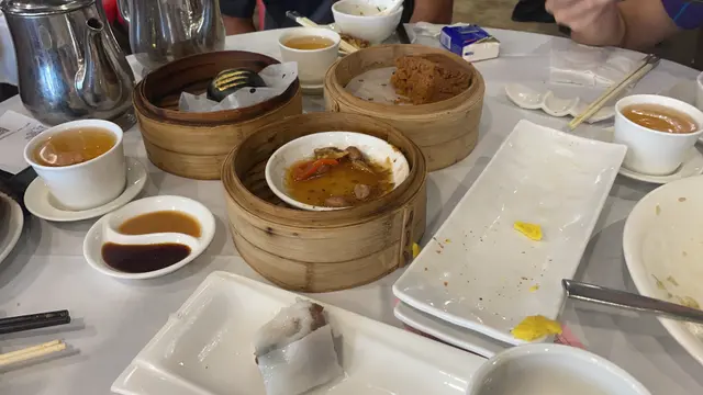 平時Lunch打過幾次去book 都full booking,今次終於book到位。酒樓設了一個小位置,有盤大煲會不停滾住茶杯同碗,感覺好似好消毒。坐底左後,侍應姐姐會夾套餐具比我地。叫左普洱茶,麻麻地。兩個人食叫左4樣點心。1.金玉參腸粉,幾特別,裡面有些脆口既碎碎,食落口感有層次2.蘿蔔千絲酥,👍勁鬆化,一咬裡面出晒煙,熱騰騰,蘿蔔絲好軟綿綿,又唔會好咸3.黑金流沙包,普通,不是太流沙4.沙巴海蝦餃,蝦都大粒,爽口查看更多