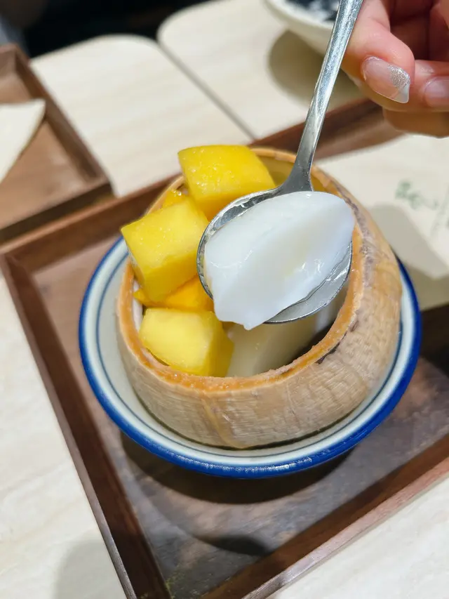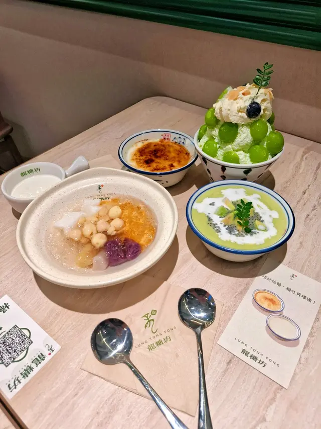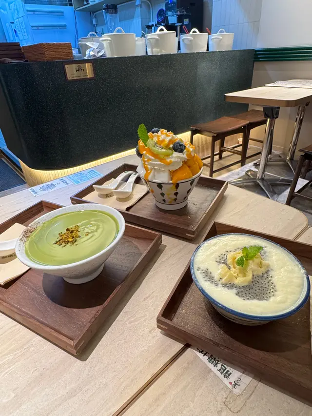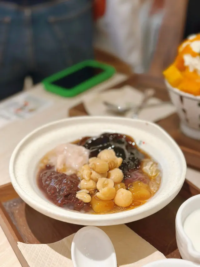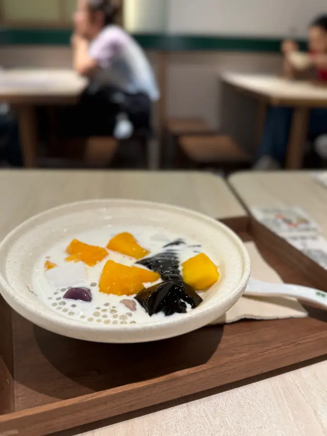 隱藏於尖沙咀亞士中厘道,鋪頭掛滿有關「應時而食」的裝飾店面雖然細細但充滿傳統港式糖水鋪的風味,一於試下佢😎✿ ✫ ✿ ✿ ✫ ✿ ✿ ✫ ✿ ✿ ✫ ✿ ✿ ✫ ✿ ✿ ✫ ✿ ✿ ✫🥢芒果河粉(凍)💰58椰奶浸著一條條晶瑩剔透同彈牙的「河粉」。「河粉」真身係由椰汁同啫喱粉製成,河粉QQ非常滑身,椰汁中仲加左哦芒果汁同芒果粒增加口感,夏天食一流!🥢一盤大滿足(熱)💰60鐘意食中式糖水既朋友仔就可以揀呢款,一次過試哂蛋白杏仁茶、香濃芝麻糊、養生核桃糊同十年陳皮蓮子紅豆沙🤩 杏仁茶質地細膩,蛋白份量都幾多😝芝麻糊同核桃糊堅果油脂香😝紅豆煲到起沙但仲有保留到顆粒感,陳皮化解左紅豆既甜膩🥢府城蝦捲💰38外皮十分酥脆,內餡的蝦肉紮實彈牙,混了少許豬肉增加滑潤感,偶爾咬到馬蹄粒,清甜多汁。✿ ✫ ✿ ✿ ✫ ✿ ✿ ✫ ✿ ✿ ✫ ✿ ✿ ✫ ✿ ✿ ✫ ✿ ✿ ✫✍🏻總評:加🔟服務費:❌👭🏻推薦指數:🌕🌕🌕🌕🌕👭🏻回頭指數:🌕🌕🌕🌕 🌕👭🏻環境評分:🌕🌕🌕🌕🌕👭🏻服務評分:🌕🌕🌕🌕🌕✿ ✫ ✿ ✿ ✫ ✿ ✿ ✫ ✿ ✿ ✫ ✿ ✿ ✫ ✿ ✿ ✫ ✿ ✿ ✫💰人均消費:$50-$70…查看更多