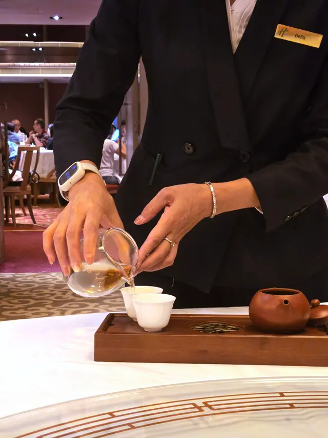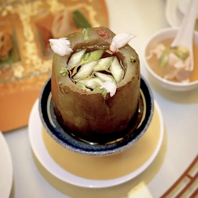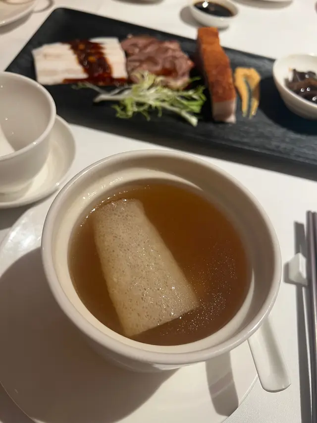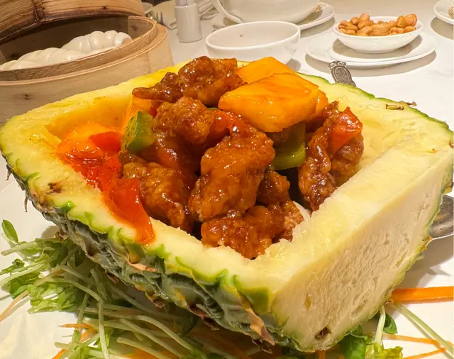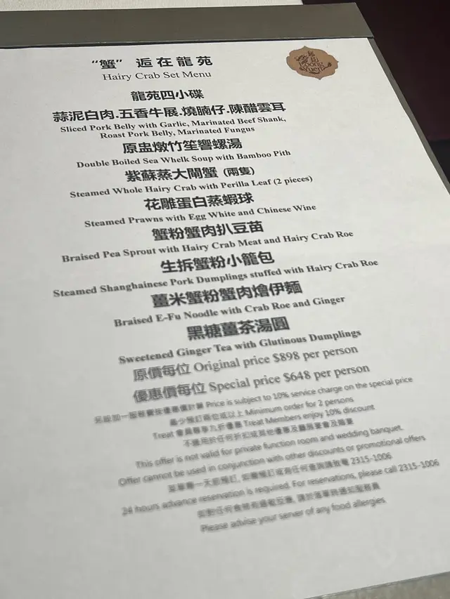 和朋友們晚飯,預訂了龍苑中菜廳。這裡環境是古色古香的中式裝修風格。享用了龍苑晚市套餐(每位$550,另收加一服務費),食物包括:蜜汁叉燒 海蜇拍青瓜典型的中式小食,叉燒肥瘦適中,蜜汁泛起光澤,味道香濃。海蜇煙韌,青瓜🥒脆身爽口。海鮮酸辣羮配料有蝦肉粒、魚肉粒及雲耳絲,酸辣味撲鼻,亦刺激味蕾,開胃提神。蒜香安格斯牛柳粒牛柳粒切得一口大小,入口軟腍,仍能鎖住肉汁。配了爽口的西芹粒,清新怡人。蝦籽油泡蝦球蝦球🍤新鮮彈牙,每一口充滿鮮味,加上有西蘭花及黃椒、紅椒作配搭,令色彩更繽紛。😊薑蔥斑球粉絲煲上菜時發出「吱吱渣渣」的聲音,蒸氣冒起,香氣撲鼻,相當吸引。斑球大件,魚肉清甜,亦炆得入味,整道菜煮得乾身。豉油皇銀芽雞肉炒麵份量極多,麵條炒得色澤均勻,幼細亦易入口,加上了雞肉絲,亦沒有太多韮菜和芽菜。美點雙輝(紅棗糕、芝麻湯丸)紅棗糕熱騰騰,甜度適中。湯丸內的黑芝麻呈流心,甜美動人。服務優質,侍應們有禮,使人賓至如歸。使用Openrice訂座有7折…查看更多