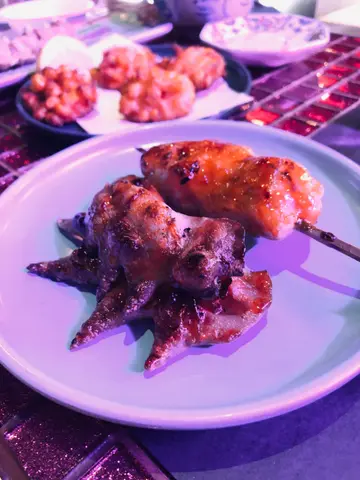 龙虎豹,好睇好睇,嚟到苏豪嘅龙虎豹除咗眼睛大饱眼福之后,食物都好有料到🔥一开始朋友拣呢间,老实讲对啲嘢食都真系无期望,谂住一定又系一间啲斋sell 装修玩 gimmick 嘅餐厅。点知估唔到又有惊喜㖞嚟到最吸睛嘅一定系佢哋充满玩味嘅装修,霓虹灯招牌💖粉红色嘅暧昧灯光,头顶嘅红灯罩,18禁嘅色色照处处都透露儿童不宜嘅气息🫣好满足到猎奇嘅心态~(影相出嚟嘅效果都好特别)嚟到一定必点Dragon Ball (明太子粟米球)🌽薄脆嘅炸皮包裹住香甜又多汁嘅粟米,微微辣嘅调味食到停唔到口串烧都系新鲜即制,有好多唔同嘅选择。除咗大路啲嘅鸡皮鸡心鸡软骨之外连少有嘅鸡冠同鸡胸软骨~特别钟意佢哋嘅鸡胸软骨串够弹牙又脆口,比一般嘅鸡软骨更加值得尝试~仲有手打虾肉墨鱼棒鲜味又有咬牙,食得到几足料唔会粉雷雷蔬菜串 (食菜健康呀) 记得要食芦笋,爽脆无渣 仲好 juicy;仲有细细粒嘅青椒仔,唔会油腻涩口好开胃Grilled Hanger Steak 10oz 即系封门柳嘅部位,滑嫩而且肉味够晒浓,简简单单已经好食(影到黑蚊蚊咁但真样系粉红靓肉嚟😂 )Hyoujimaki 系一个无包实嘅 open 版寿司卷,一眼就可以睇到晒啲配料,我哋呢款有帆立贝同埋安康鱼肝,一啖食晒可以同时品尝到肝嘅幼滑口感同埋海鲜嘅鲜美融合系口入面爆发,呢个绝对系要自私食Perfect ending 嚟串烧菠萝,外焦香内甜蜜,烧过嘅菠萝系特别香甜多汁。配 highball 同埋柠檬汽泡焼酎都绝配楼面 Staff 同师傅都好 nice又好倾,service 好食得自然更开心