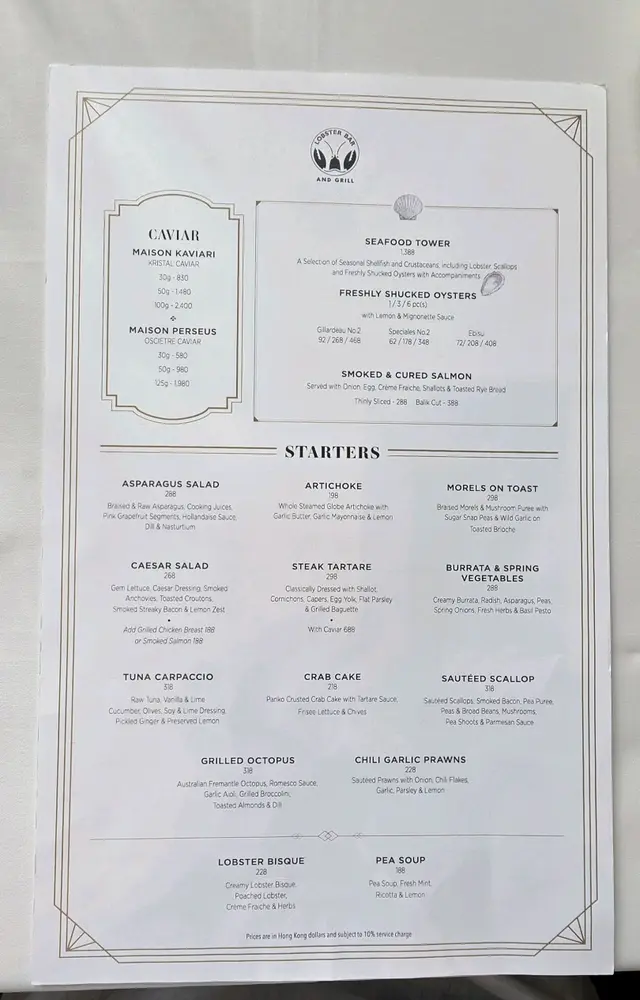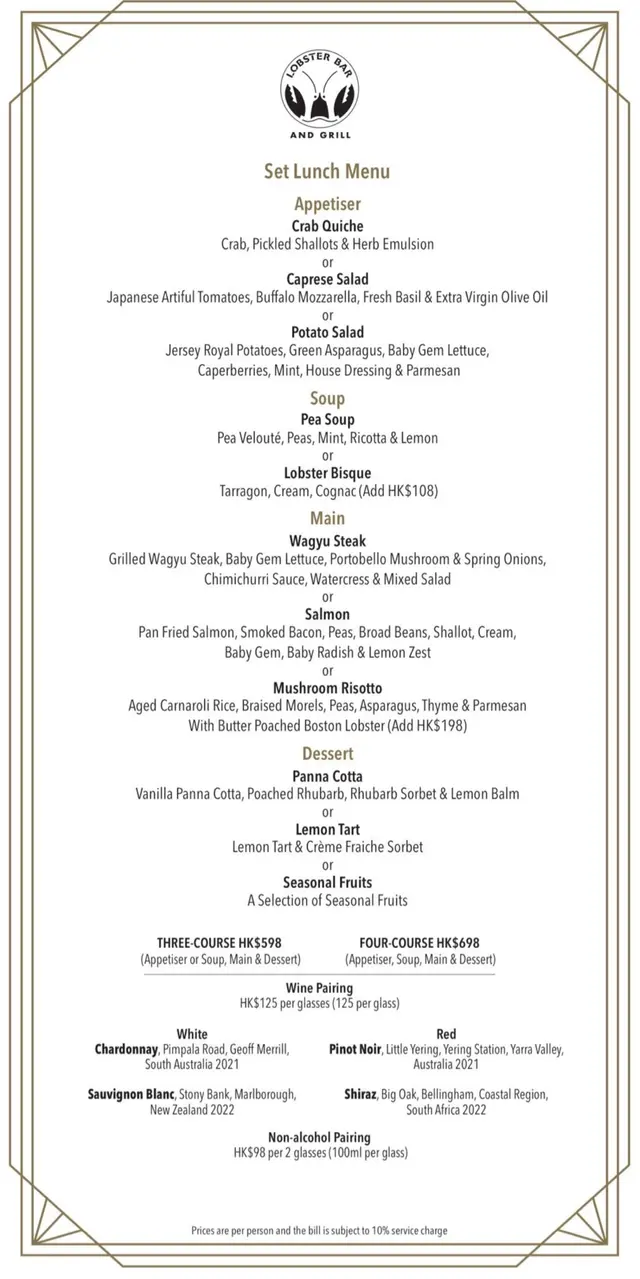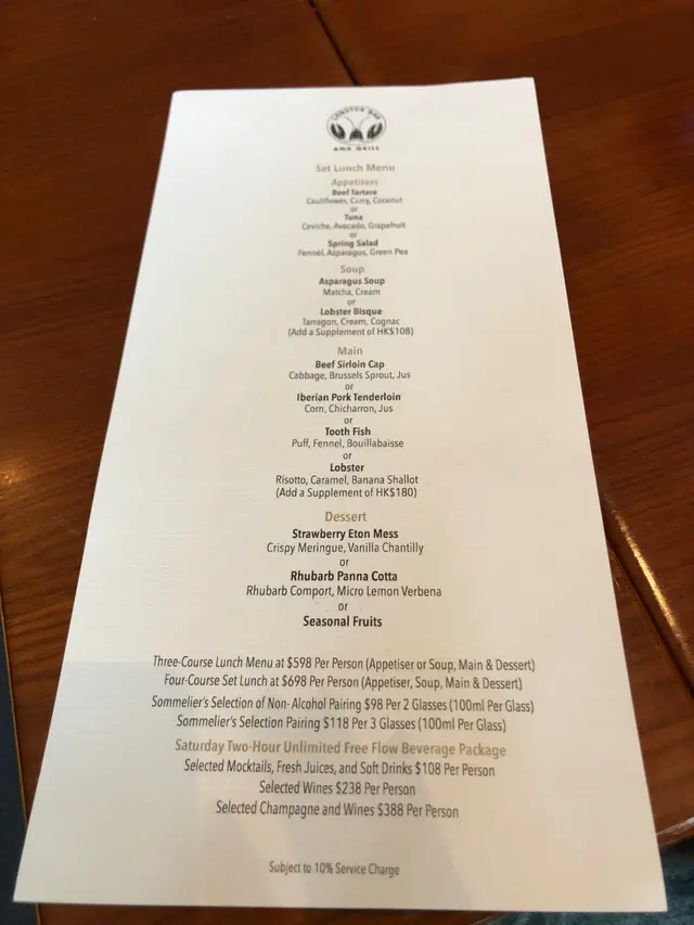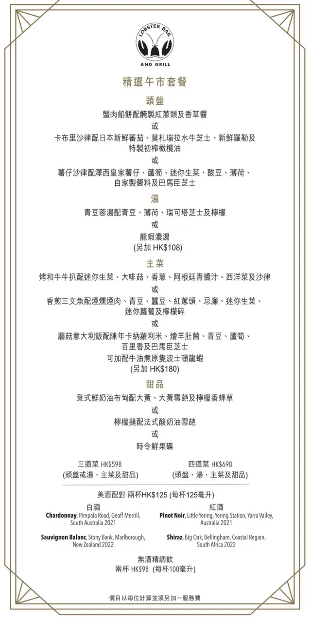 龍蝦吧餐廳 (金钟) 网上订位即赚Rice Dollars 网址: https://s.openrice.com/QrLS0M0S000 地址: 香港金鐘金鐘道88號太古廣場港島香格里拉6樓 电话: +852 28208560