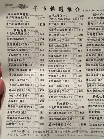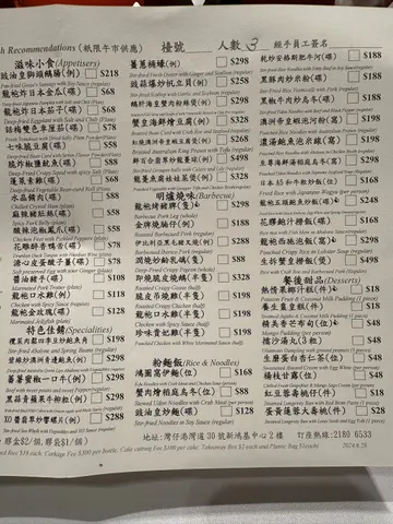 著起龙袍唔似太子一向钟意揾未食过既餐厅,想揾中菜食, 见到呢间星期六晚去到, 哗, 成个厅, 连埋我得3枱客.静到不得了叫𩠌啦叫左龙袍烧猪脾红烧大虾豆腐煲姜葱蚝煲金银蒜炒白菜先黎红烧大虾豆腐煲, 好似冇烟既原来我误会左佢,个煲系好熬既味道唔错, 虾都爽, 佢有个list 既菜式系有特价 原价$168,而家$98, ok, 就算原价$168 我都觉得ok但第二,第三味就出事之后到姜葱蚝煲, 佢上枱, 拎住个汁, 问淋唔淋落去已经唔对路我食姜葱蚝食唔少,通常系蚝走走油, 再同姜葱一齐爆, 咁先香, 未食过就咁炸再淋汁完全令人失望, 姜葱响底, 将炸蚝放上面, 再淋汁, d 味入唔到d 蚝度唔知佢呢个系边度煮法, 广东煮法唔系咁啰问个阿姐, 佢d 态度仲衰衰地, 都符合openrice 前面post 阿姐态度第三味就龙袍烧猪脾, 叫得龙袍烧猪脾, 加个招牌名响个菜式度, 谂住系好野啦原来冇料到, 好似我响Apita/Aeon 买果d 焗猪脾咁, 系比多左2个酱咁大吧(黑椒/芥辣)金银蒜炒白菜, 就正常发挥, 算好食整体感觉麻麻地, 我唔介意价钱贵d, 但我expect 质素服务唔得, 菜式唔得, 唔知日头生意如何, 应该好难做落去…查看更多