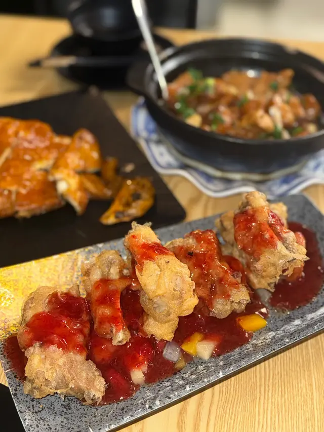 龍記小廚非常有名嘅街坊小店,閒日晚上入去都見幾乎全場滿座,裏面好有大排檔嘅氣氛,晚市呢度冇收加一,有每位八蚊嘅茶芥,不過佢個蕎麥茶又真係幾好飲,抵俾🍵睇呢度嘅菜單都係以小菜為主,冇客飯或者碟頭飯,見到菜單有好多選項眼花繚亂,一於就叫個揭開菜單第一頁就見到嘅$388三寶,包括有炸子雞、龍膽腩豆腐煲、時蔬,有魚有肉有菜,均勻又豐富🐟🥩🥬🍗 炸子雞呢味可以話係龍記小廚嘅招牌菜!試咗果然名不虛傳,抵佢出名!三寶係半隻雞,首先隻雞斬得好靚,啖啖肉得嚟又唔會驚食到碎骨,可見師傅刀功一流🔪雞皮炸得金黃酥脆,油香撲鼻,口感好獨特,喺出面好多酒樓餐廳都食唔到咁出色嘅炸皮,連我平時唔太喜歡食雞皮都忍唔住食曬雞肉嫩滑彈牙,雞有雞味,帶住淡淡茶香,食到我直豎拇指👍🏻🐟 龍膽腩豆腐煲上枱時個煲炸炸聲!勁大煙!非常香!睇見都覺得正!「龍膽腩」即係龍膽石斑魚嘅魚肚腩部位,肉質豐腴,富含膠質和油脂,口感Q彈,配搭煎炸後嘅效果更加惹味油香!好鍾意食呢個魚皮,厚身彈性,啖啖骨膠原食到好黏嘴,一流!魚肉嫩滑,一丁兒魚腥味都無豆腐軟滑入味,索哂汁醬,加埋痴住鍋邊嘅少許燶味,美味程度同龍膽腩絕對有得fight!🥬 時蔬聽樓面姐姐講可以揀通菜、白菜仔、芥蘭etc,咁我就揀最王道嘅蒜蓉炒白菜仔!白菜翠綠爽脆,蒜蓉夠多!食完感覺自己呢一餐好均衡飲食好健康😎🤟🏻🦀 私房蟹黃醬海皇炒飯($103)冇飯落肚硬係爭咁啲嘢,龍記炒飯嘅選擇唔多,最特別係呢個咁就試呢個啦!話說我見好多台都有叫豉油王炒麵,應該都係招牌菜,下次有機會我會試🍝呢個炒飯上枱時,面頭有一篤蟹黃醬,配料有翠玉瓜粒、細粒蝦仔、章魚粒,叫得做海皇嚟講呢個陣容就真係削咗少少😅不過炒飯本身炒得幾好,每一粒米飯都包裹住金黃色嘅蟹黃醬,飯粒分明,軟硬適中,味道係幾好食,不過又未至於話下次必定encore嘅驚豔,不過不失啦,主要覺得係個名吹大咗……如果叫私房蟹黃醬海鮮炒飯會fit返啲合理預期雖然本身有收茶芥,但落到嚟隊呢啲香口嘢,點會唔叫啤酒汽水🤭 幫大家望埋㗎喇,汽水啤酒嘅價錢都算係合理,唔好忘記佢不收加一,咁就飲多兩打都唔肉赤啦,係咪先🍻龍記上菜快,樓面姐姐服務態度親切,雖然以街坊小廚嚟講佢定價偏高,但試過就知道係物超所值,好適合一大班麻甩朋友摸住酒杯底,嘆住好西,有講有笑…Read More