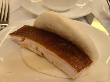 周年聚餐投票,「龙逸轩」最终胜出。餐厅装修经典,布置略显陈旧。𤔡怕人多意见多,因此搅手一早已预订了餐厅以祝寿为主题的套餐,亮点之一是赠送生日蛋糕给食客。四小碟中最喜欢五香牛腱,牛腱香软湿润,肉味浓郁。椒盐虫草花对我来说是创新小食,是第一次品尝,虫草花非常香脆,一点也不油腻,只是油炸之物,只可浅尝。花胶螺头汤非常鲜甜,花胶厚且弹牙,十分滋味。因为未能吃鸭,所以不清楚食物水准,但见鸭子油光亮丽,鸭身饱满,且友人皆吃得津津有味,相信质素甚好。对我而言,柚皮扒鹅掌是今晚最具看头的菜式,柚皮跟鹅掌均焖得十分入味,口感软糯,非常合胃口。厚切的石斑球鱼味不错,且不带残余鱼腥,石斑皮更是充满胶质口感,与嫩绿的菜远十分搭配。花枝片切得非常薄,颜色近乎半透明,口感虽不至于爽弹,但也不黏牙,可惜鲜度一般,XO酱的微辣和咸香正好弥补了这缺口,蜜糖豆倒是翠绿鲜甜。龙趸头腩的骨皮多而肉少,裹粉油炸可锁紧水份,且令龙趸皮更有口感,只是粉皮有点厚重,影响了口味。哈哈虾炒饭以虾肉、樱花虾及虾酱炒制而成。虾酱的份量适中,炒饭带虾酱香而不过咸,只是虾肉的鲜度一般。甜品正常水准,作为饭后的一点甜,也算合适。…查看更多