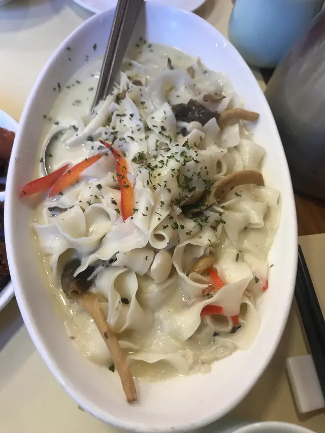 嚟志連靜院,除咗參觀呢個環境清幽嘅地方外,今次嘅目的係要試呢度嘅齋菜 - 龍門樓 - 志蓮素齋。下午嘅時間等位嘅人都唔少,等咗大約十五分鐘左右,終於可以入座。我哋兩個人,點咗4樣嘢,包括有《松露忌廉燴手幹麵》、《松露百合露筍餃》、《金菇菜苗餃》同《素菜包》。食齋菜少有會見到西餐,所以我覺得呢個《松露忌廉燴手幹麵》好特別,佢又唔似扁意粉嘅質感,我覺得有啲似更薄嘅刀削麵,口感少少帶煙韌,加上松露嘅獨特香氣,完全冇違和感,同食意大利粉嘅分別唔大。《松露百合露筍餃》、《金菇菜苗餃》同《素菜包》呢三個都係我最喜歡果種純素菜嘅點心,我一般唔太想食啲有肉類名嘅素菜。價錢方面,埋單300蚊左右,話貴又唔算貴,對我嚟覺係值得。…查看更多