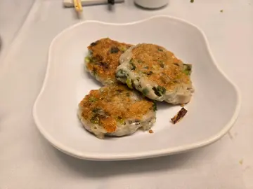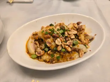 揾食肥华前同事玲姐,真不愧有眼科万岁王之美誉,刚荣休不久便在,2O25年6月2O日又喺黄埔呢间酒楼䜩请同事晚宴,今餐喺食此店一个特价全包宴,有1O款食品加埋12位茶介和加一服务费,虽然冇啤酒汽水供应,但全席在(1一5)嘅平常日子,此店都喺收$1888至于食物质素。㈠高汤生海虾,虾肉质够爽够脆味道鲜甜,可惜此店喺用,美极酱油俾顾客作此味海鲜调味之用,就喺一大败笔。(二)银炉脆皮烧鹅皇,喺全席最差嘅食品,只鹅喺深浅鸳鸯色,皮唔脆肉唔香,枉配烧鹅皇呢个称号。(三)翡翠酱皇鸳鸯蚌片,一般酒楼应有水准。(四)金蒜银丝蒸原只生蚝,蚝肉够厚身亦有蚝味喺全餐第二佳食品。(五)瑶柱海皇烩冬蓉,普通酒楼水准一个汤羹无疚无誉。(六)胡麻青蔬伴烧汁煎五头鲜鲍鱼,全餐最惊艳菜式全席人一致赞好,烧汁鲍鱼固然好味,就连伴碟嘅琥珀合桃都美味非常。(七)秘制榄豉酱蒸蝴蝶大龙趸,鱼够大条,但肉嚡冇鱼味亦喺全席最失败嘅食品之一。(八)鱼汤唐芹带子浸胜瓜,肥华唔食呢个菜,不过有同事话OK。(九)飘香荷叶饭,饭够干身有头味道都唔错。(十)御品红枣糕,唔太甜早茶点心货色。呢餐玲姐万岁全包宴,喺抵食就唔算好食,值。👍🏻👍🏻👍🏻