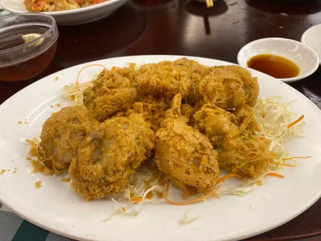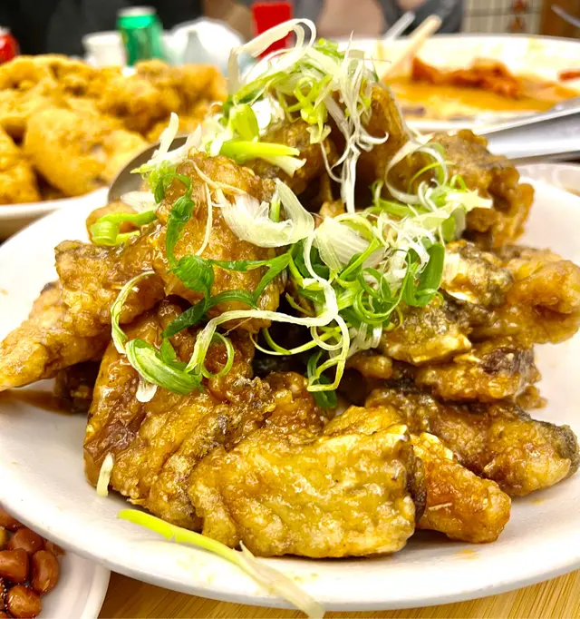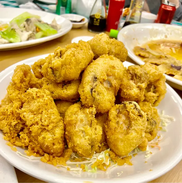 三年冇得出去食飯,終於今年公司團年飯可以拉大隊去鯉魚門食海鮮🦞老細book咗龍騰,係一間比較舊式嘅海鮮酒家,室內環境撲實不華,第一印象已經覺得老實唔劏客。墨魚刺身,生鮮爽口,墨魚鬚比較硬所以再加工椒鹽炒,炒過即刻變得爽口(唔記得映相)。牛油蒜蓉焗蝦,極度香口但又唔覺熱氣,連蝦殼蝦頭都食埋。上湯焗龍蝦煎米粉底,每人半隻龍蝦用刀叉食好爽,但估唔到主角係煎米粉,大家爭住encore。一魚兩味:炒球和炆頭腩,炒球食到塊魚皮啖啖骨膠原,個炆頭腩同平時出邊酒樓唔同,炸過再炆,所以有外脆內軟嘅效果,讚👍酥炸生蠔,同事點名要食,炸漿薄身,蠔有蠔味,可以連食3隻都唔覺漏。薑蔥鮑魚煲,一開蓋香噴噴,不過食落味道冇想像中入味,又或者已經食到好飽食慾開始下降。另外叫咗上湯浸菜心和招牌生炒骨,唔記得映相。甜品有脆麻花同木瓜,人均大約$600連海鮮,大滿足🥰查看更多